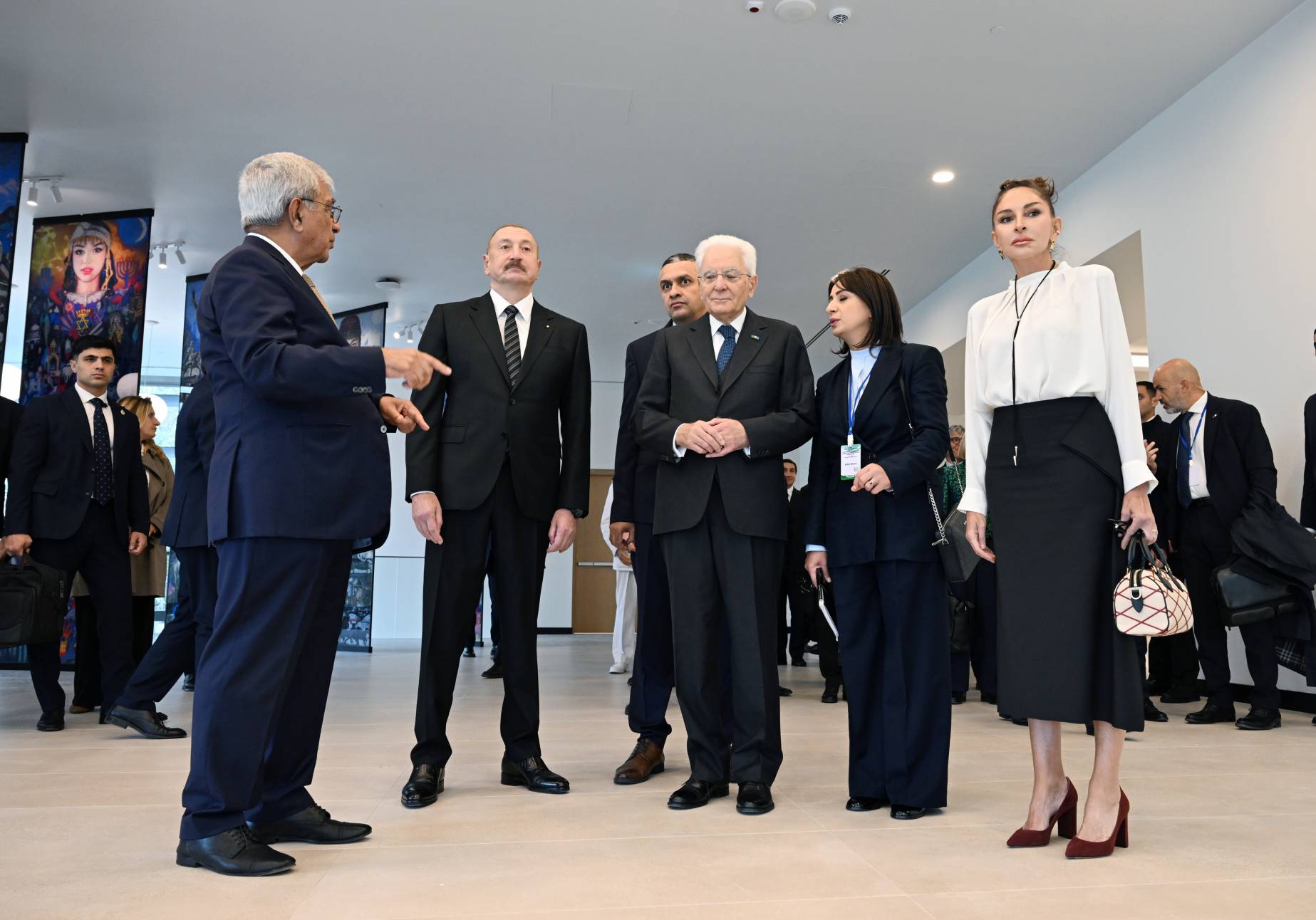 Prezident İlham Əliyev, birinci xanım Mehriban Əliyeva və İtaliya Prezidenti Sercio Mattarella tədris binalarında yaradılan şəraitlə tanış olduqdan sonra ölkəmizdə səfərdə olan İtaliya universitetlərinin rəhbərləri, İtaliya-Azərbaycan Universitetinin professorları və tələbələri ilə görüşüblər.