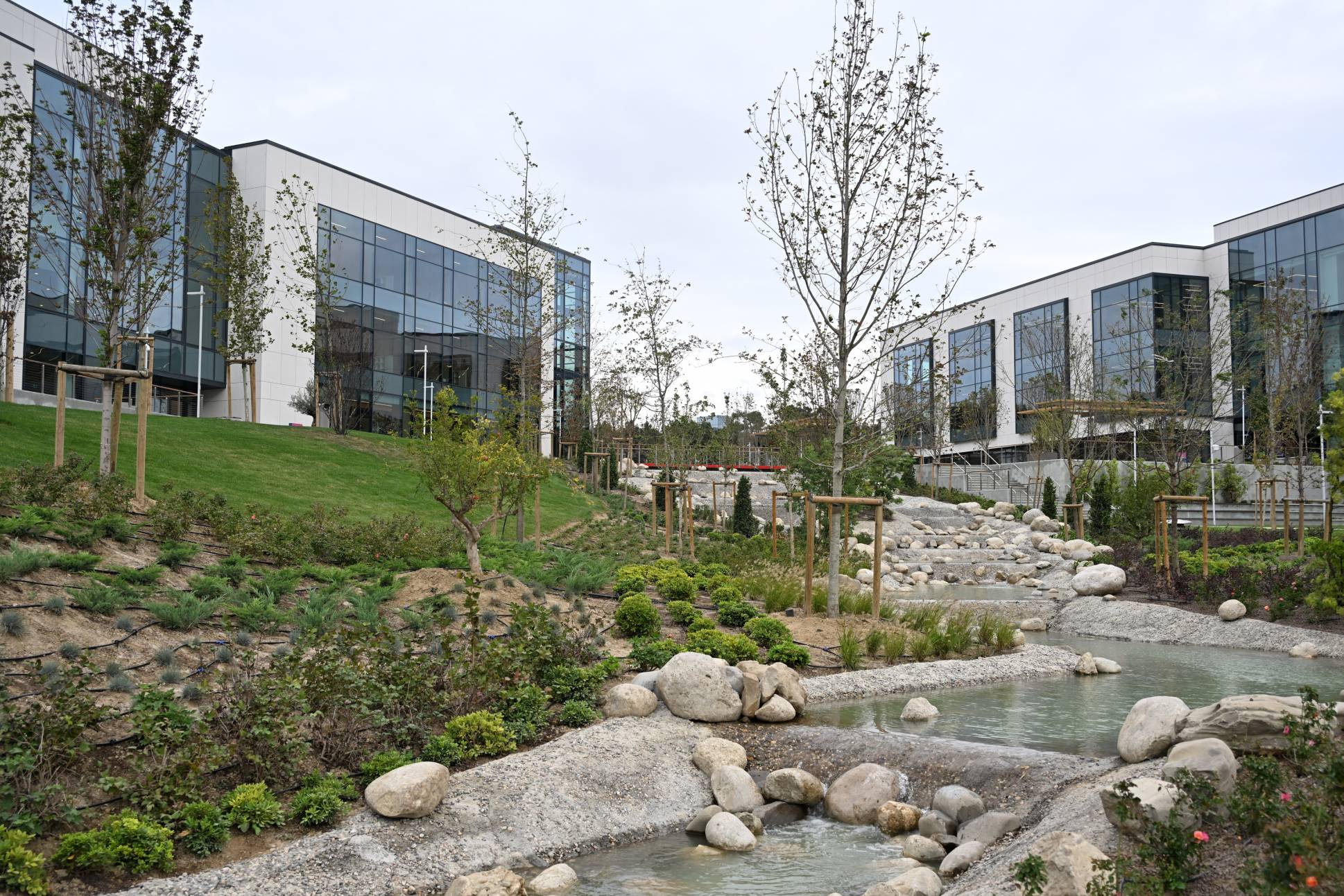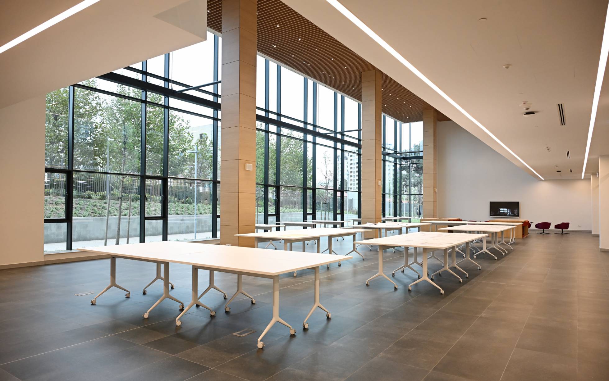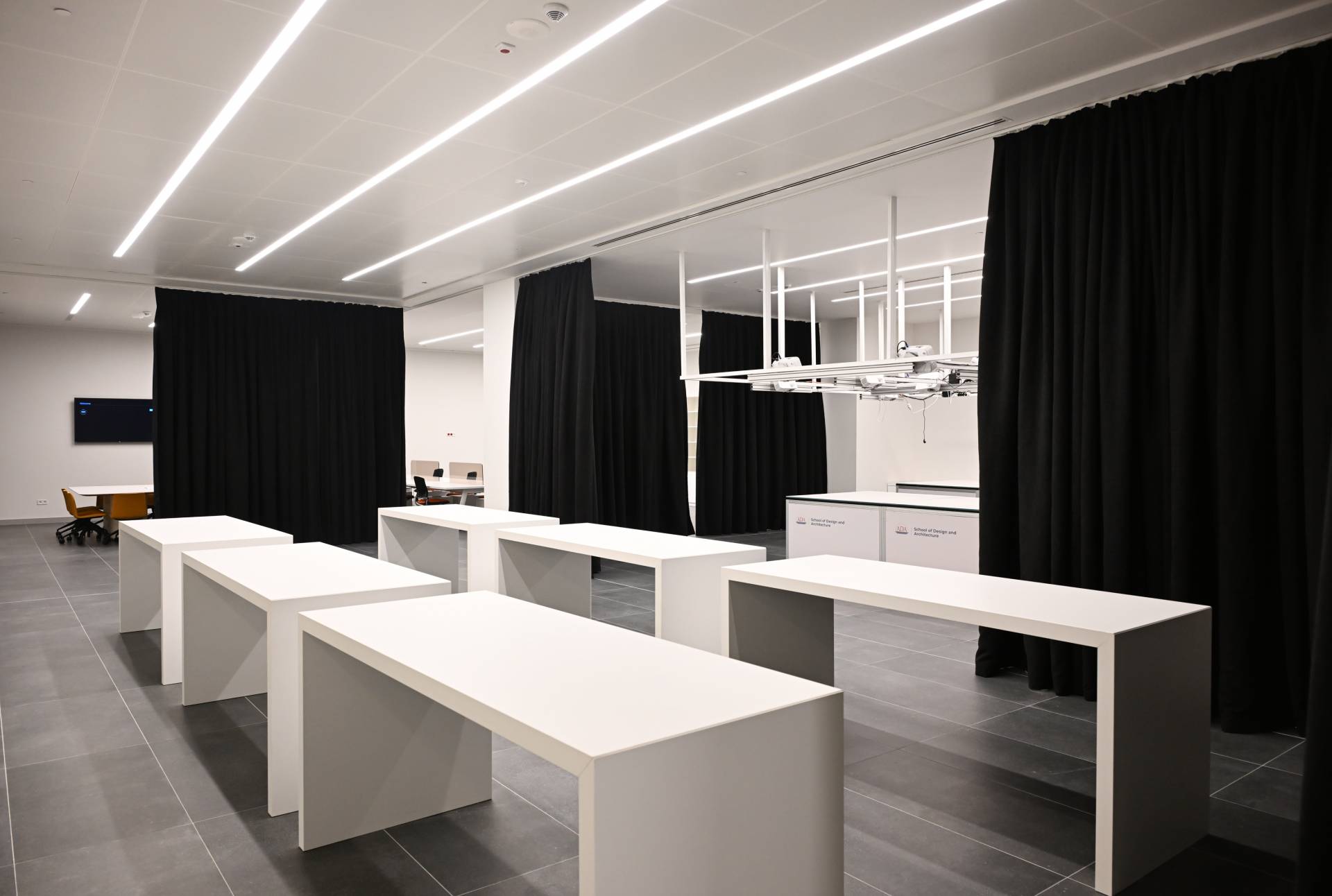 Tədris korpuslarında sinif otaqları ilə yanaşı, müasir texnologiyalara əsaslanan, İtaliyanın Bolonya Universiteti və Milan Politexnik Universiteti ilə birgə qurulmuş 6 tədqiqat və 7 tədris məqsədli laboratoriya da fəaliyyət göstərəcək. Burada memarlığa aid materiallardan ibarət kitabxana, şəhərsalma, landşaft və foto-video studiyaları, müxtəlif dizayn emalatxanaları yerləşir. Yeni binalarda qurulmuş tədris emalatxanası isə dərslərin praktiki tədrisi üçün bir məkandır. Burada müxtəlif növ materiallarla işləmək üçün texnoloji və rəqəmsal imkanlar yaradılıb. Tədris emalatxanası tələbələr və tədqiqatçıların bir yerdə işlədiyi məkandır. Onların birgə əməyinin nəticəsi isə xüsusi Dizayn və yaradıcılıq mərkəzi vasitəsilə sənaye və biznes strukturlarına çatdırılacaq. Bir sözlə, bura tədris və tədqiqatın real iş dünyası ilə birləşdiyi mərkəzdir.
