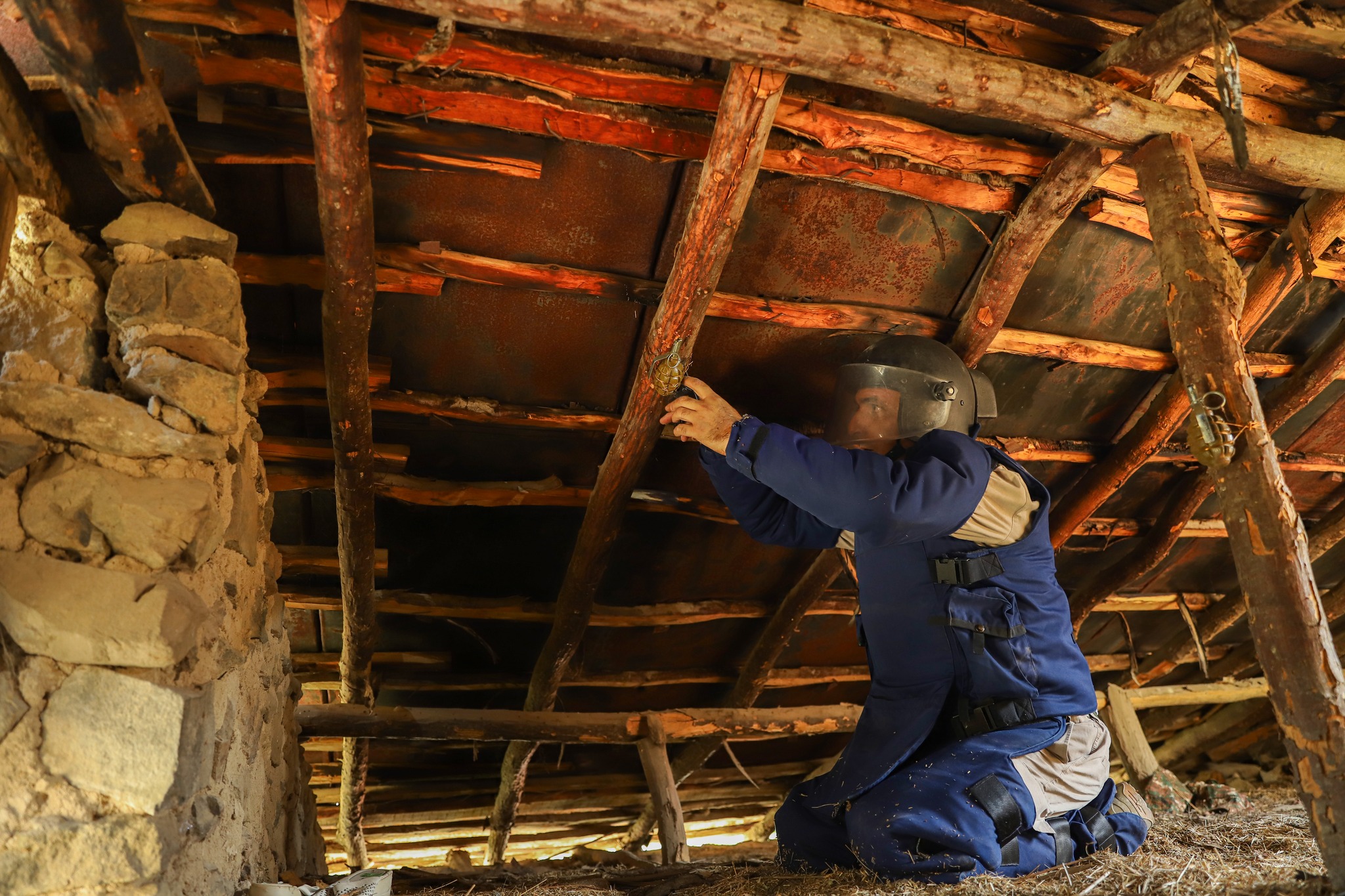 Bildirilib ki, evin damında sütuna və damın giriş qapısına tələ məftili vasitəsilə quraşdırılmış döyüş vəziyyətinə gətirilən 2 ədəd F-1 əl qumbaraları aşkarlanıb.