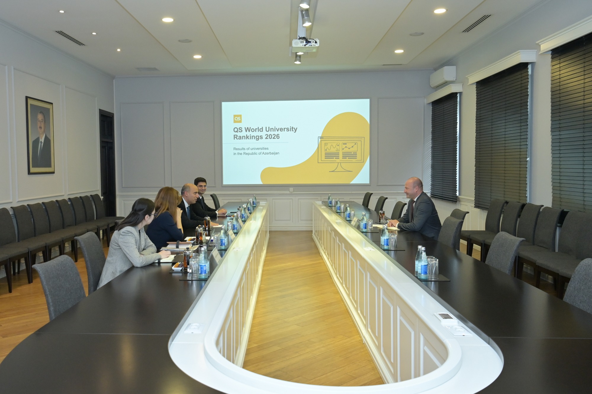 Bildirilib ki, Elm və Ali Təhsil üzrə Dövlət Agentliyinin əməkdaşlarının da iştirak etdiyi görüş zamanı QS qlobal reytinqində ölkəmiz üzrə ümumi nəticələr, həmçinin Azərbaycan universitetlərinin bir sıra istiqamətlər üzrə göstəricilərinin təhlili təqdim olunub, o cümlədən gələcək inkişaf perspektivləri müzakirə olunub.
