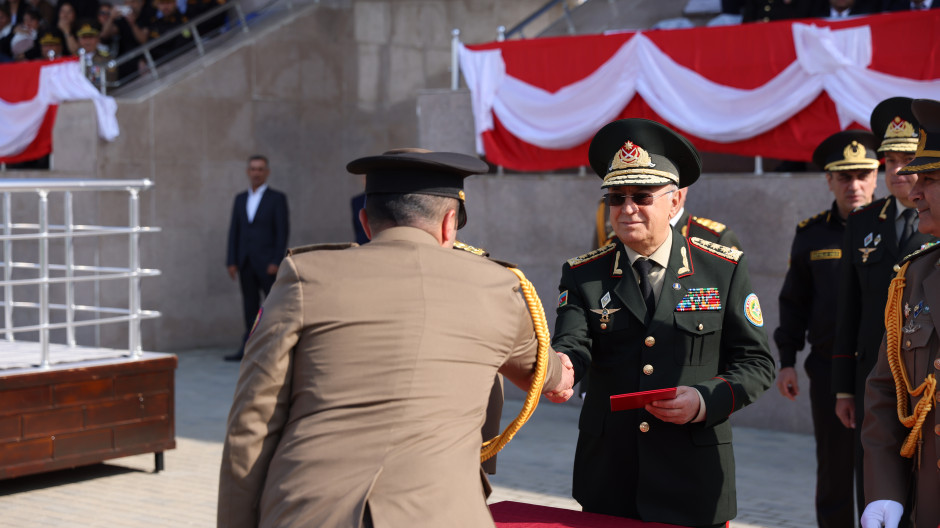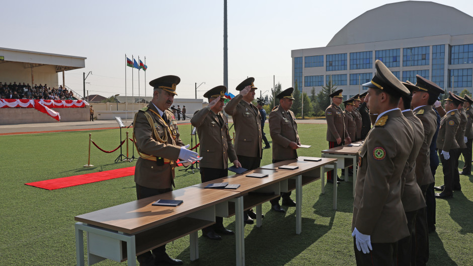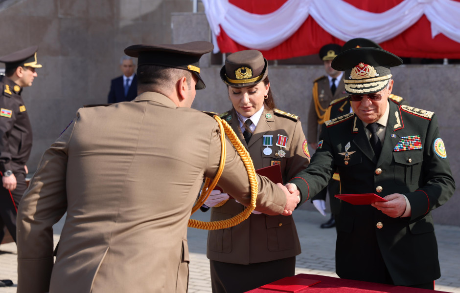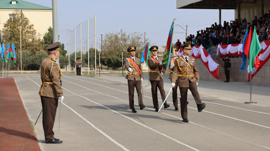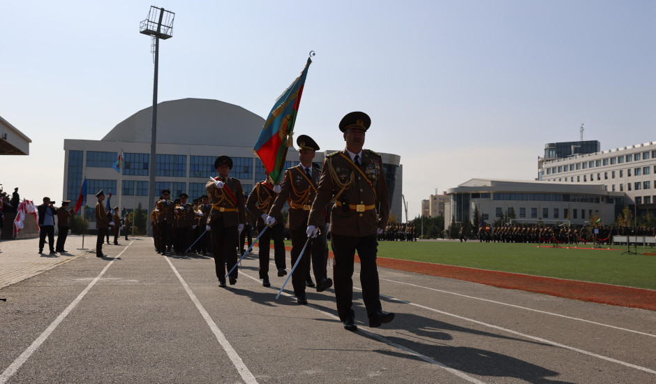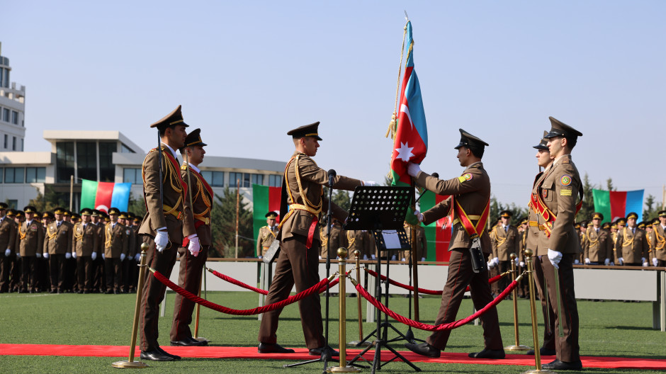 Məzunlar Akademiyanın bayrağı ilə vidalaşaraq onu IV kurs kursantlarına təhvil veriblər.