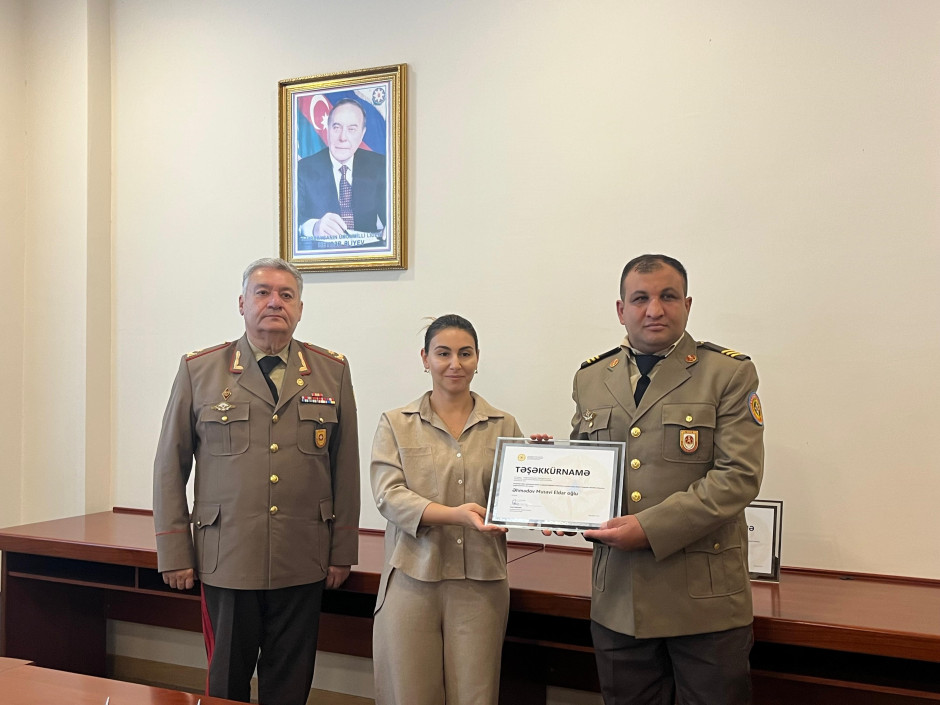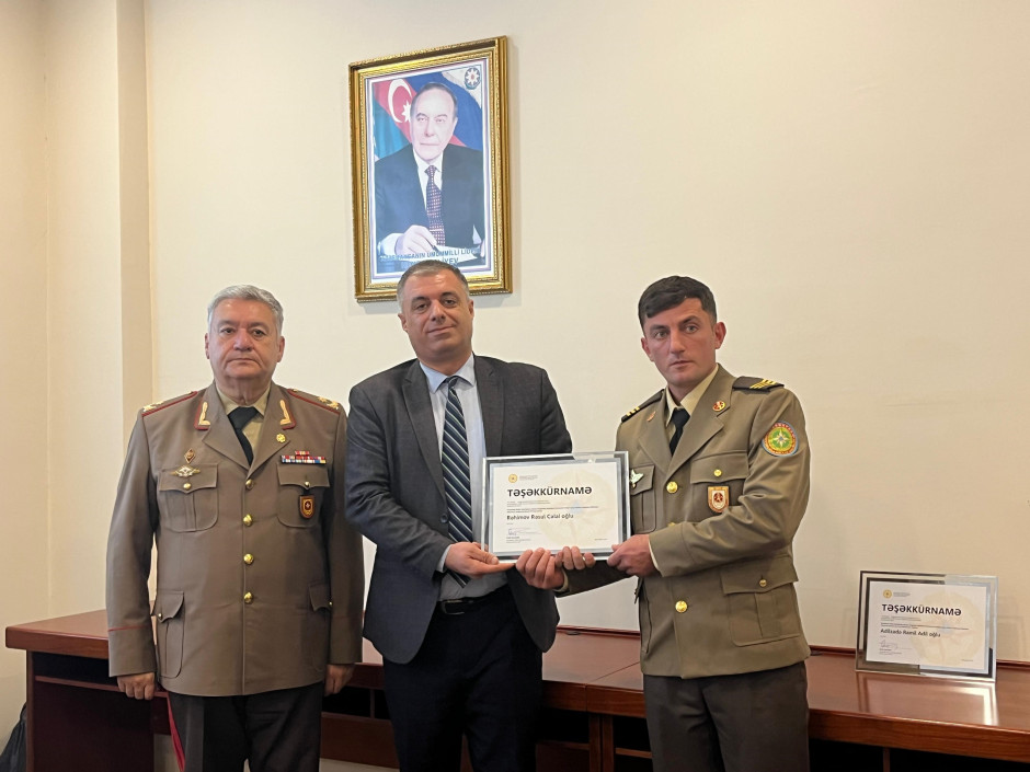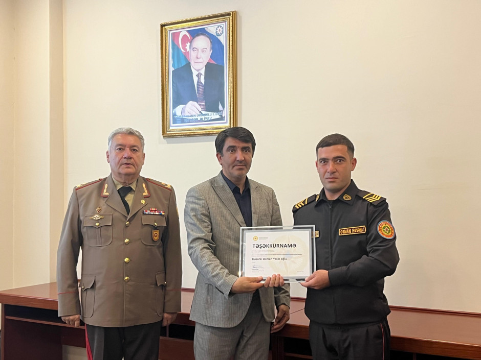 Sonra FHN yanında İctimai şura tərəfindən Dövlət Yanğından Mühafizə Xidmətinin xidmətdə fərqlənən 12 nəfər yanğınsöndürəni “Təşəkkürnamə” ilə təltif edilib.