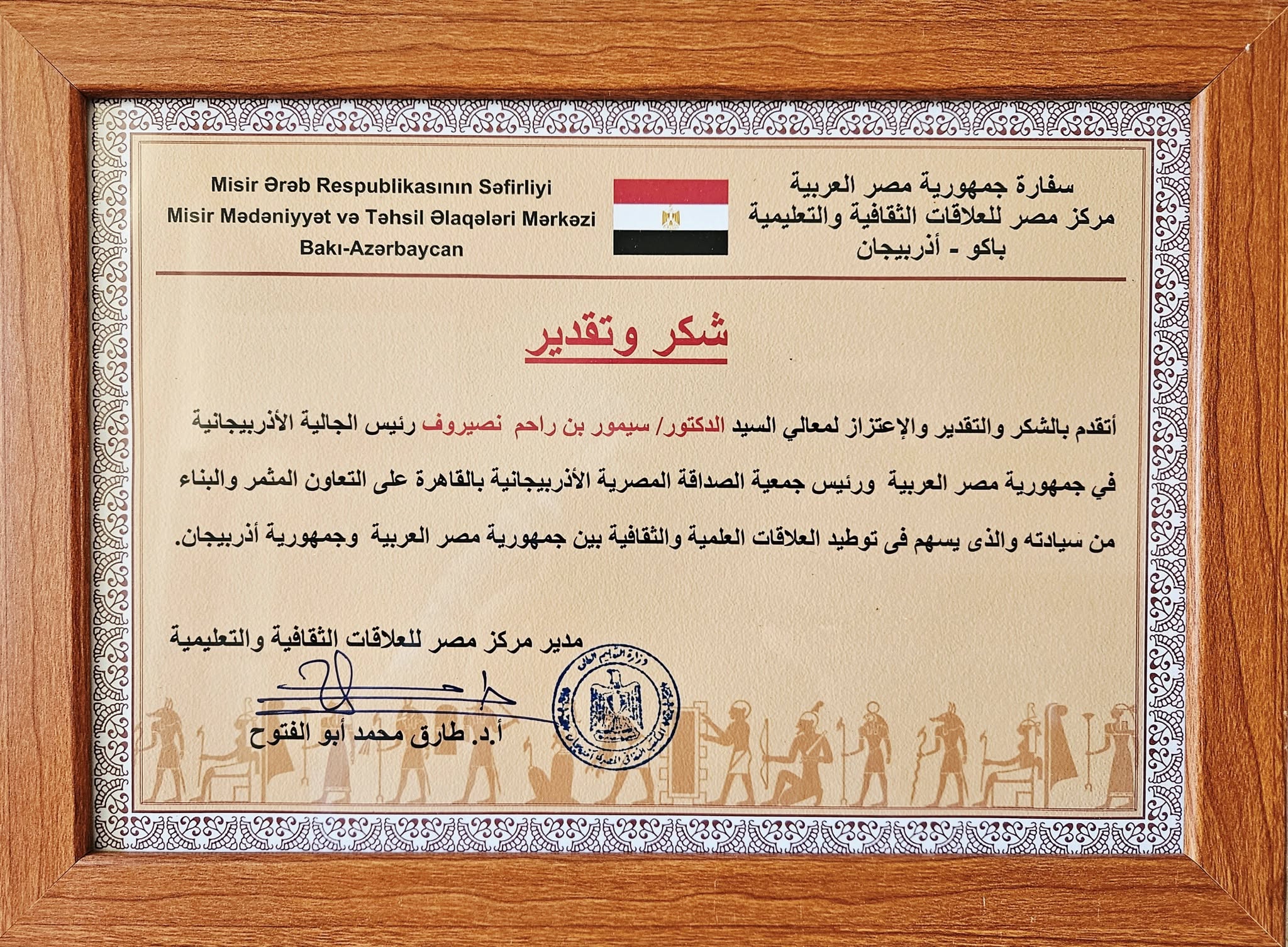 – Misir Prezidenti tərəfindən elm sahəsində birinci dərəcəli ali ordenlə təltif olunmağım həqiqətən çox qürurvericidir. Xüsusən də bu, vətənimiz adına böyük nailiyyətdir. Misirdə azərbaycanlı bir tədqiqatçının belə yüksək səviyyəli mükafat alması xalqımıza verilən dəyərin göstəricisidir. Bu, həm də ölkələrimiz arasında əlaqələrin nə qədər yüksək səviyyədə olduğunu sübut edir. Misirdə yaşayan 10 milyondan çox əcnəbiyə də bu, bir mesaj idi. Misirdə elmi fəaliyyətlə ciddi şəkildə məşğul olan, ictimaiyyətə töhfə verən istənilən şəxs, əcnəbi olsa da, dövlət tərəfindən dəyərləndirilir. Bildiyim qədər, bu ordeni alan ilk əcnəbi mənəm. Artıq 23 ildən çoxdur ki, Misirdə işləyirəm. Bu müddətdə çox sayda, xüsusən də xarici tələbələrin təhsili ilə bağlı layihələr həyata keçirmişəm. Hazırda dünyanın 71 ölkəsindən 1700-dən çox tələbəm var. Onlar ölkələrinə qayıdıb fəaliyyət göstərirlər, aralarında professor olanlar da az deyil.