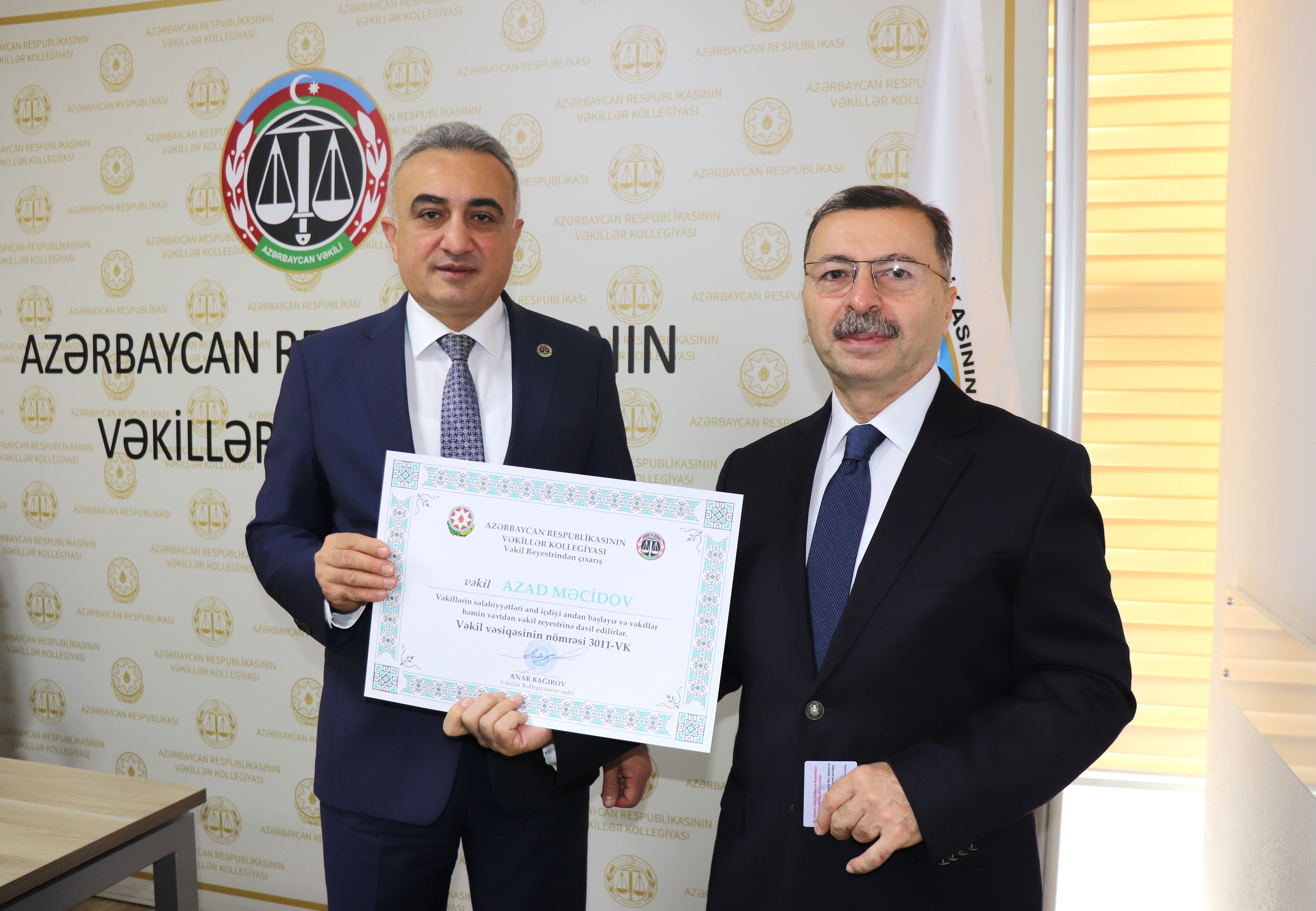 Onların hər ikisi Vəkillər Kollegiyasının Rəyasət heyətinin bugünkü iclasında vəkil andı içiblər və kollegiyaya üzv olublar.