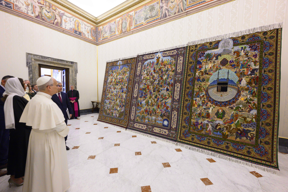 “Səmavi dinlər” layihəsi əsasında Azərbaycan xalçaçılarının ərsəyə gətirdiyi triptix Vatikanda təqdim edilib. Azərbaycanın Birinci vitse-prezidenti Mehriban Əliyevanın Roma Papası XIV Leo ilə görüşündə təqdimatı olan bu sənət əsəri iudaizm, xristianlıq və İslam dinlərinə həsr edilib, dərin fəlsəfi düşüncənin, milli sənətkarlıq ruhunun təcəssümüdür.