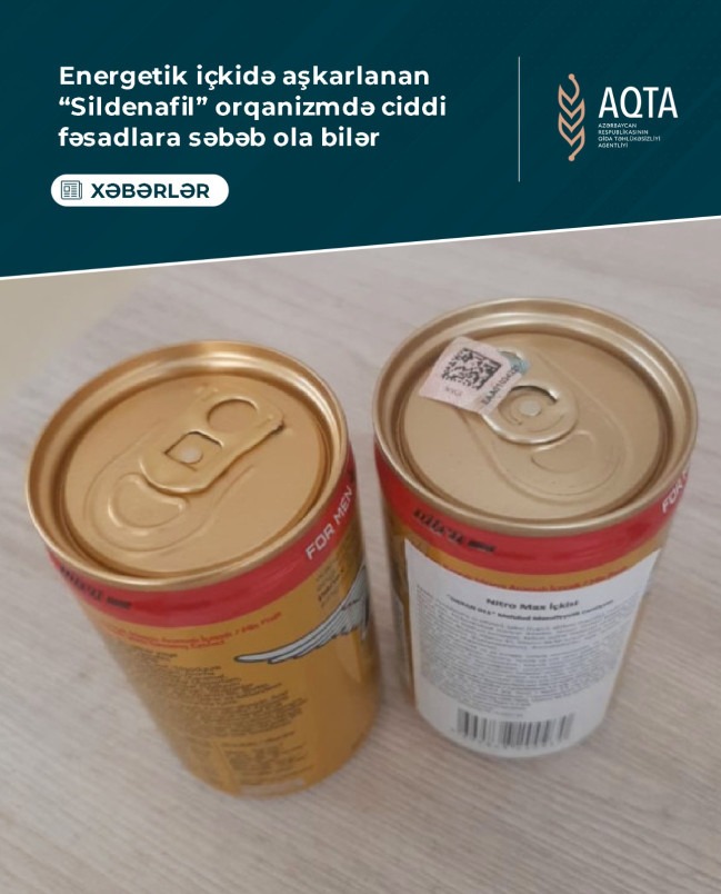 “Nitro Max” əmtəə nişanlı energetik içki məhsulu partiyalarında dərman vasitələrinin tərkibində istifadə olunan sildenafil maddəsi aşkarlanıb.