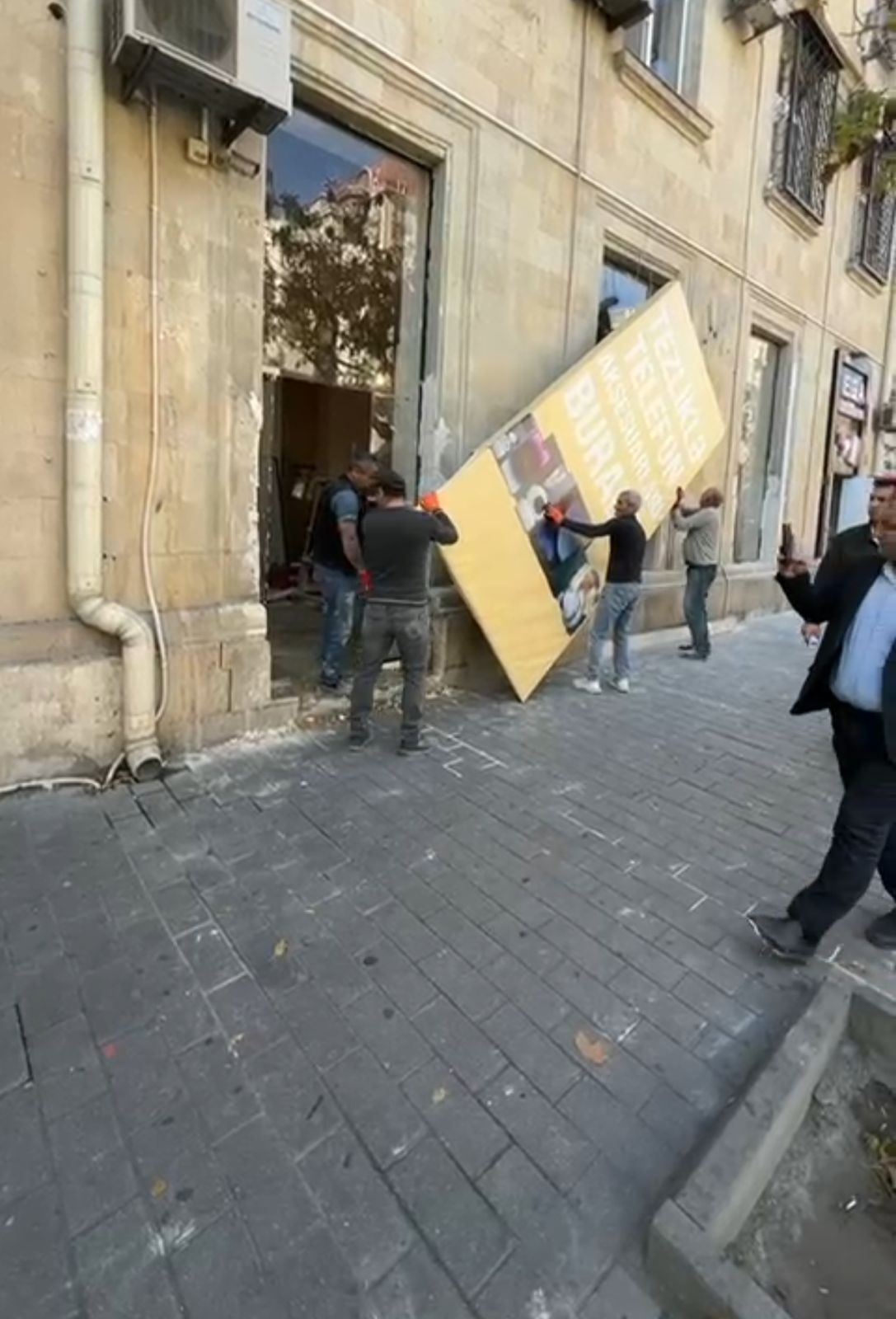 "Bakı Şəhər Memarlıq və Şəhərsalma Baş İdarəsi və Mədəni İrsin Qorunması, İnkişafı və Bərpası üzrə Dövlət Xidməti tərəfindən işlərin dayandırılması ilə bağlı aidiyyəti qurumlar və obyektin sahibləri əvvəlcədən xəbərdar edilsə də, qanunsuz fəaliyyət yenidən davam etdirilərək reklam banerləri ilə gizlədilməyə cəhd göstərilib.
