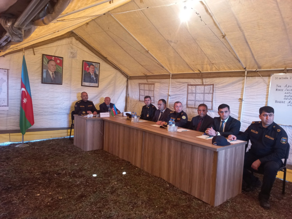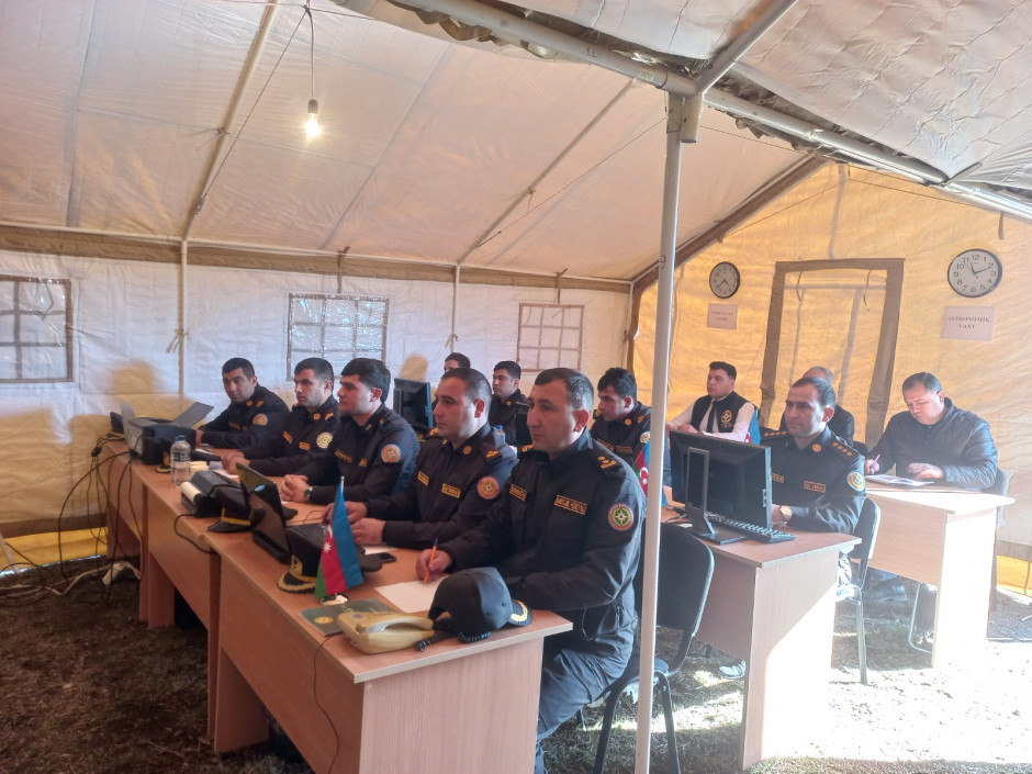 Tədbirdə, əvvəlcə şərti fövqəladə hal zamanı “əhalinin köçürülməsi” üçün hazırlanmış çadır şəhərciyinə baş çəkilib, mülki müdafiə dəstələrinə sıra baxışı keçirildikdən sonra təlim üçün nəzərdə tutulmuş qərargahda müşavirə keçirilib.
