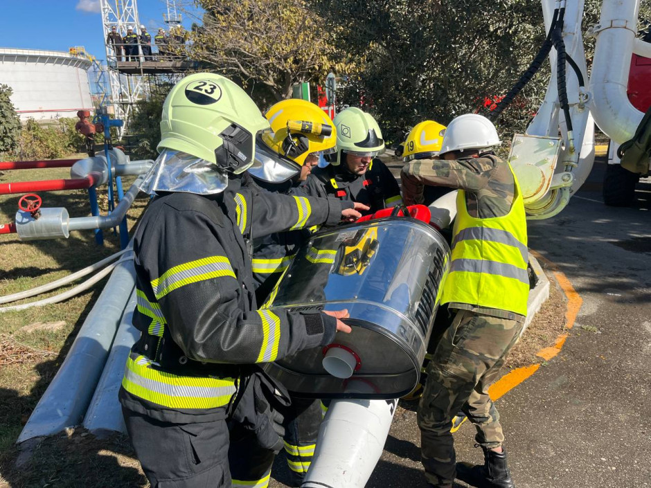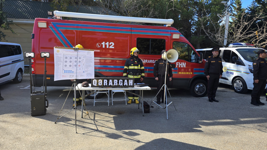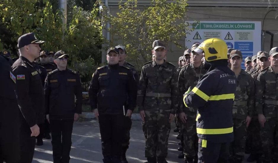 Təlim zamanı Neft Emalı Zavodunun 1 nömrəli rezervuar parkında baş vermiş şərti yanğın yerinə operativ çatan FHN-in Dövlət Yanğından Mühafizə Xidmətinin yanğından mühafizə bölmələri işçilərin “təhlükəli ərazidən” təxliyə edilməsi, “yanğın” yerində çevik kəşfiyyatın aparılması və “yanğının söndürülməsi” əməliyyatını yerinə yetiriblər.