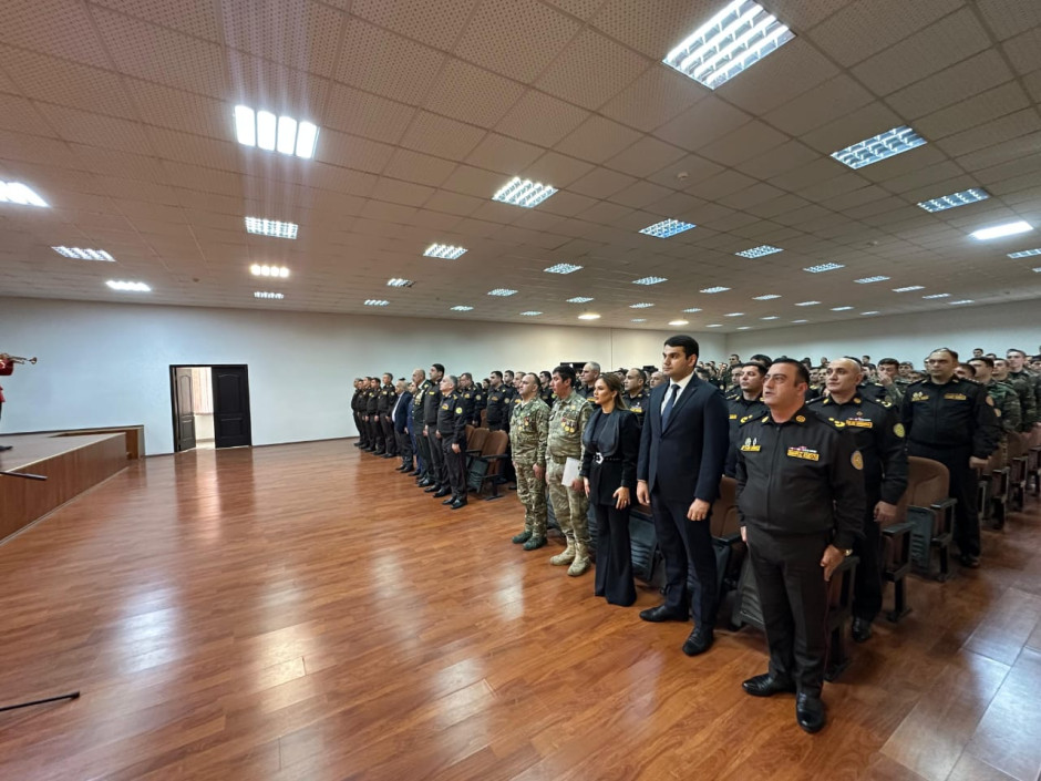 Tədbirdə çıxış edənlər Vətən müharibəsində rəşadətli Ordumuzun qazandığı möhtəşəm qələbə sayəsində Azərbaycan Respublikasının ərazi bütövlüyünün bərpa edilməsi ilə yanaşı, həm də bu tarixi Zəfərin hər bir Azərbaycan vətəndaşının qürur mənbəyi olduğunu vurğulayıblar. Natiqlər 44 günlük Vətən müharibəsində Silahlı Qüvvələrin Müzəffər Ali Baş Komandanı cənab Prezident İlham Əliyevin müdrik rəhbərliyi altında qəhrəman Azərbaycan Ordusunun qazandığı tarixi Qələbədən ətraflı bəhs edib, qarşıdan gələn Zəfər Günü münasibətilə şəxsi heyəti və tədbir iştirakçılarını təbrik ediblər.