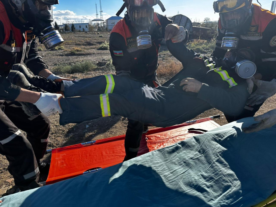 Təlim zamanı zavodda baş vermiş şərti yanğın yerinə operativ çatan Dövlət Yanğından Mühafizə Xidmətinin yanğından mühafizə bölmələri işçilərin “təhlükəli ərazidən” təxliyə edilməsi, “yanğın” yerində çevik kəşfiyyatın aparılması və “yanğının söndürülməsi”, FHN-in Sumqayıt Regional Mərkəzinin xilasetmə qrupları isə “zərərçəkmişlərin xilas edilməsi” əməliyyatlarını yerinə yetiriblər.