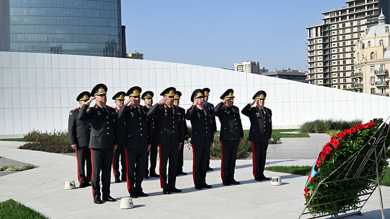 Sonra Şəhidlər xiyabanına gələn hərbi qulluqçular Vətən uğrunda canlarını fəda etmiş şəhidlərimizin məzarlarına və “Əbədi məşəl” abidəsinin önünə tər gül dəstələri düzüblər.