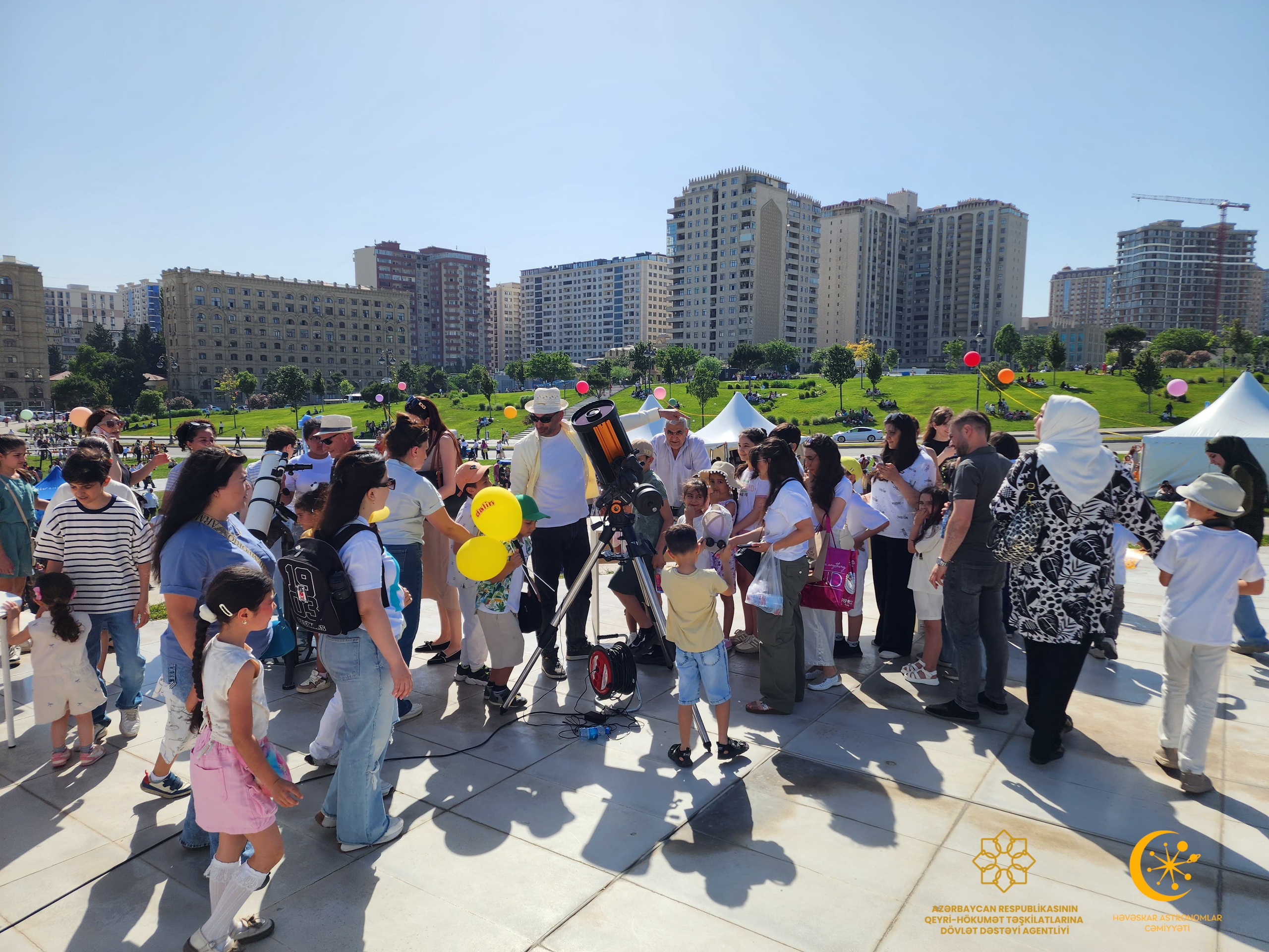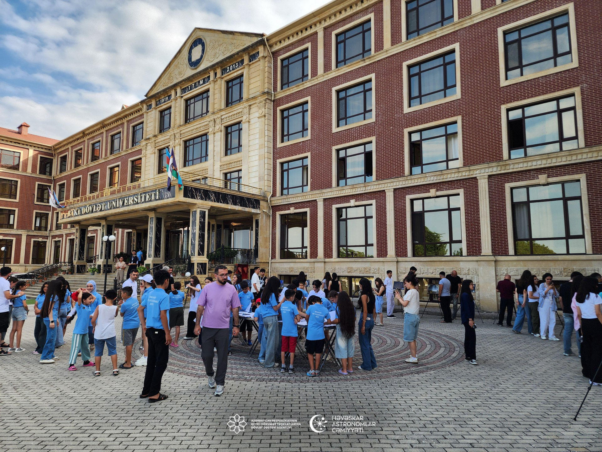 Daha sonra Bakı Dövlət Universiteti və tərəfdaş qurumların təşkil etdiyi Yay düşərgəsində “Astronomiya axşamı” keçirilib. İştirakçılar astrofoto sərgisi ilə tanış olub, interaktiv oyunlarda iştirak edib və axşam saatlarında teleskoplarla müşahidələr aparıblar.