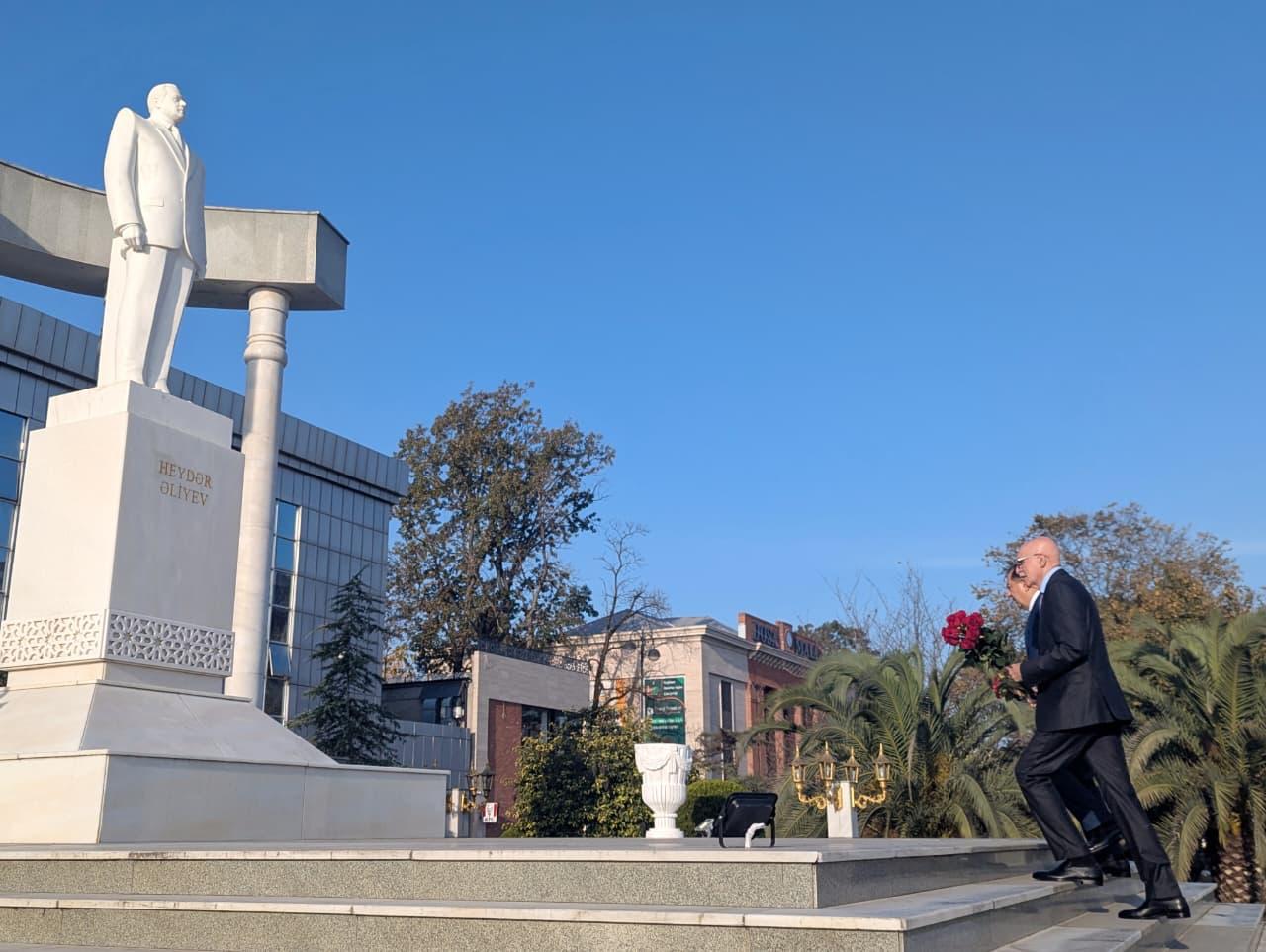 Nazirlikdən Teleqraf-a verilən xəbərə görə, səfərin əvvəlində nazir müavini Firudin Qurbanov Lənkəran Şəhər İcra Hakimiyyətinin başçısı Taleh Qaraşov ilə birlikdə ulu öndər Heydər Əliyevin abidəsini ziyarət edib, önünə gül dəstələri qoyub.