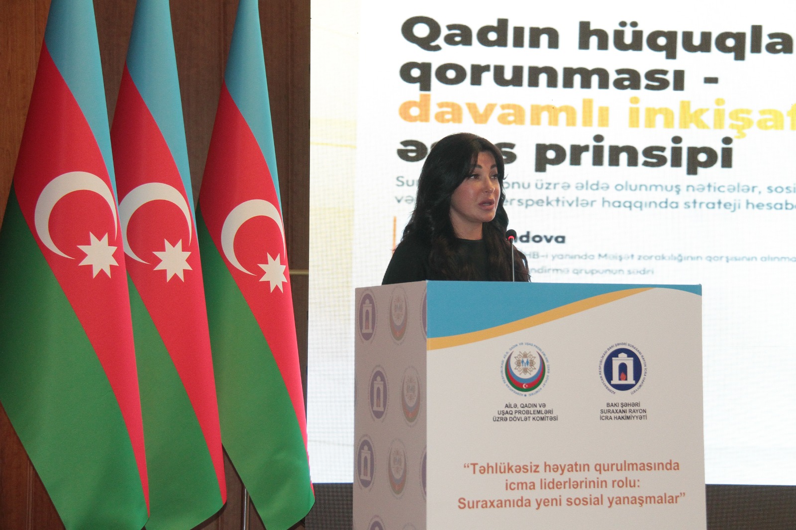 Suraxanı Rayon İcra Hakimiyyətində Ailə, Qadın və Uşaq Problemləri üzrə Dövlət Komitəsi və Suraxanı Rayon İcra Hakimiyyətinin birgə təşkilatçılığı ilə “Təhlükəsiz həyatın qurulmasında icma liderlərinin rolu:Suraxanıda yeni sosial yanaşma” adlı konfrans keçirilib.