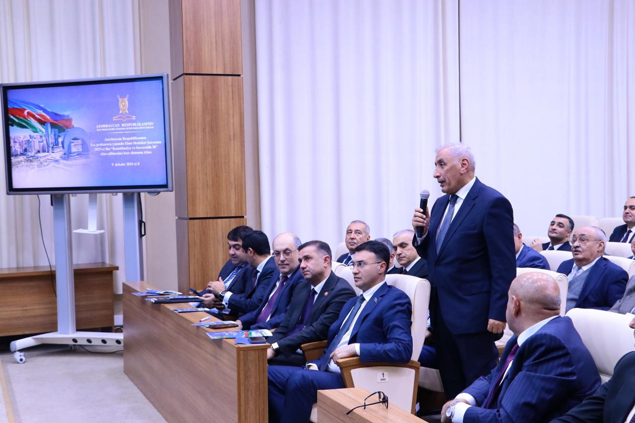 İclas çərçivəsində 2025-ci ilin “Konstitusiya və Suverenlik İli” münasibətilə ali təhsil müəssisələri arasında keçirilən “Azərbaycan Respublikasının Konstitusiyası və Dövlət Suverenliyi” adlı hüquq viktorinasında “Nominasiyalar” üzrə fərqlənmiş tələbələrin mükafatlandırılması mərasimi təşkil edilib və qaliblərə mükafatlar Baş prokuror Kamran Əliyev tərəfindən təqdim olunub.