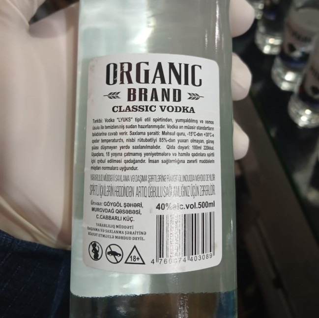 Marketdə ümumi sayı 91 ədəd “Golf Organic”, “Vip Line”, “Orginal Natura”, “Piterskaya”, “Wheat Water” və ”Organic Brand” əmtəə nişanlı saxta alkoqollu içki aşkar edilib. Saxta içkilər satışdan kənarlaşdırılıb.
