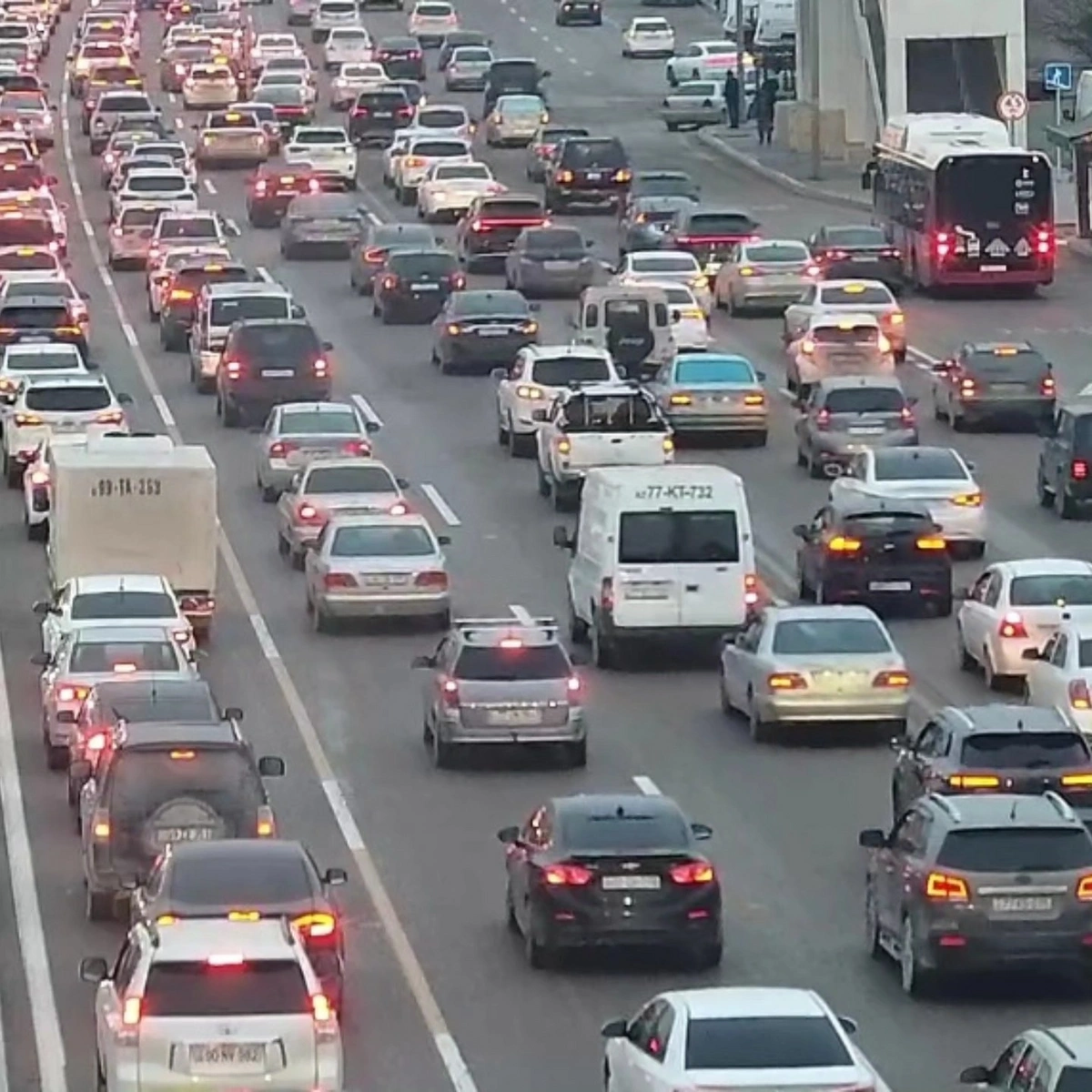 19. Heydər Əliyev prospekti, əsas yol, mərkəz istiqamətində sıxlıq müşahidə olunur.