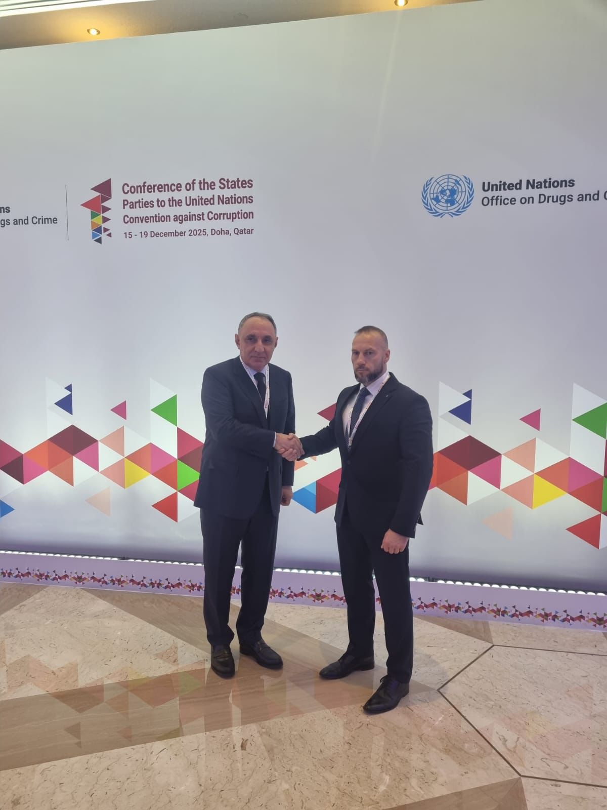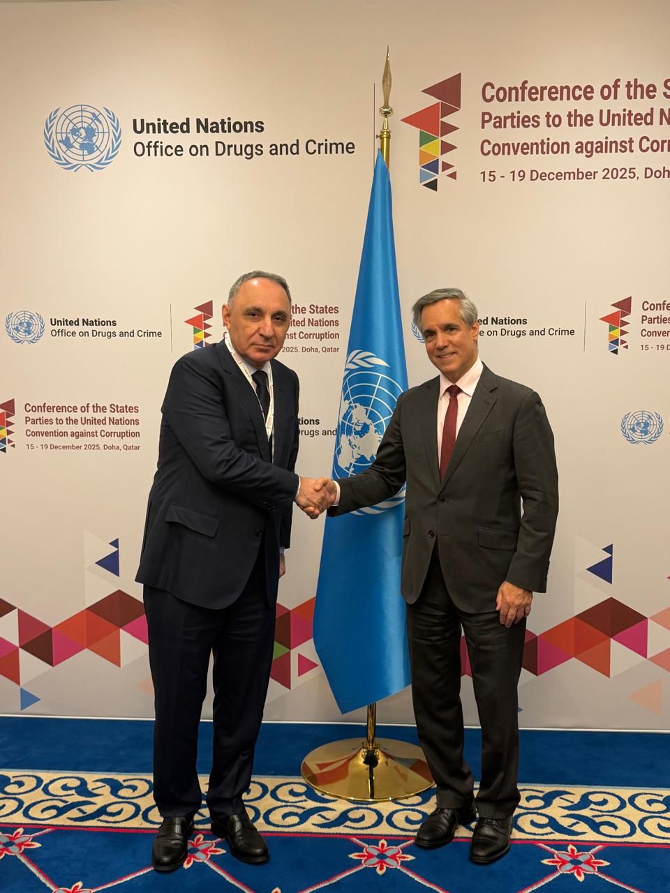 Qətər Dövlətinin İnzibati Nəzarət və Şəffaflıq Qurumunun rəhbəri Hamad bin Nasser Al Misnad ilə görüşdə Baş prokuror Kamran Əliyev həmkarını BMT-nin Korrupsiyaya qarşı Mübarizə üzrə Konvensiyasına Tərəf Dövlətlərin 11-ci Assambleyasının sədri seçilməsi münasibətilə təbrik edib, nümayəndə heyətimizə göstərilən yüksək qonaqpərvərliyə görə təşəkkür edərək qurumlar arasında yüksələn xətt üzrə inkişaf edən münasibətlərin olmasını qeyd edib.