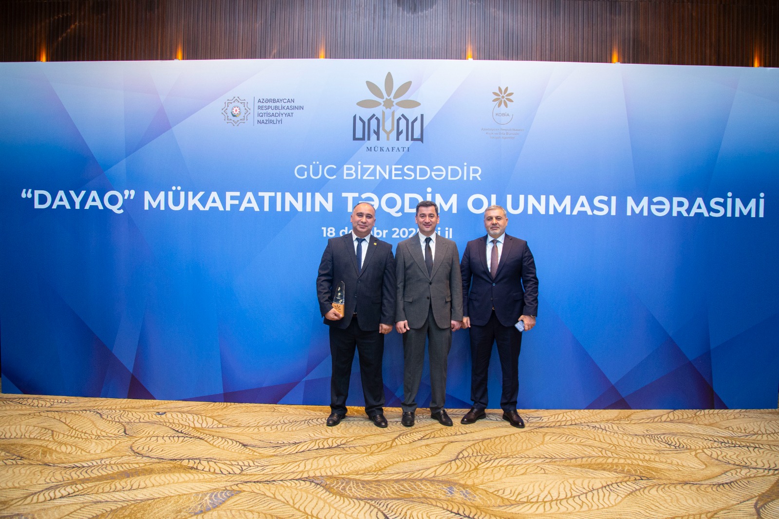 2025-ci ildə innovativ və müasir yanaşmalar tətbiq edən, ixracyönümlü məhsul və xidmətlər istehsal edən, aktiv investisiya fəaliyyəti ilə seçilən və məşğulluğun artırılmasına töhfə verən 17 biznes subyekti “Dayaq” mükafatına layiq görülüb.