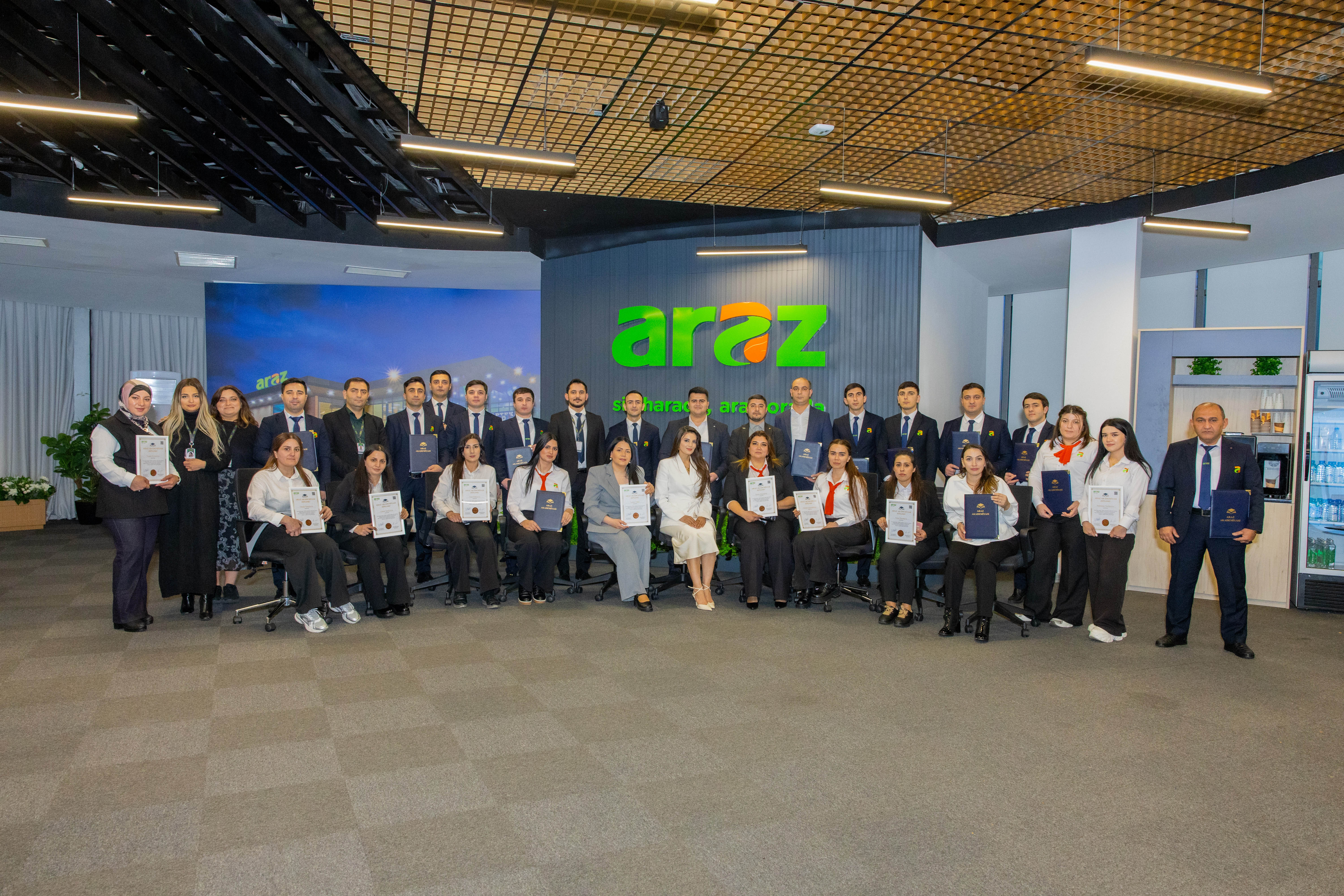 “Araz” supermarketlər şəbəkəsinin nəzdində fəaliyyət göstərən “Araz Akademiyası”nın ilk tədris proqramı olan “Mağaza idarəçiliyi” proqramını uğurla tamamlayan əməkdaşlara diplomların təqdimetmə mərasimi keçirilib.