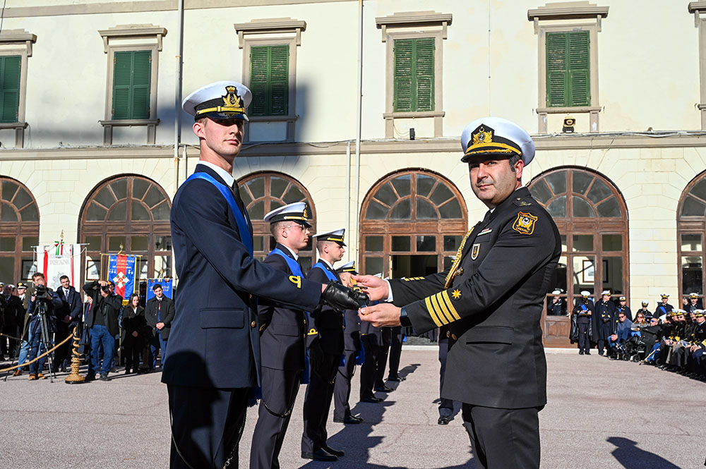 Bu çərçivədə Azərbaycan Respublikasının İtaliyadakı Hərbi Attaşelik aparatının nümayəndəsi İtaliyanın Livorno Hərbi Dəniz Akademiyasını fərqlənmə ilə bitirən leytenant Guglielmo De Simoneyə Azərbaycan HDQ komandanı adından imzalanmış sertifikatla birlikdə “Dənizçi kortiki”ni təqdim edib.