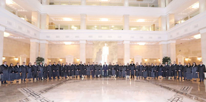 Teleqraf xəbər verir ki, iclasda Azərbaycan Respublikasının Prezidenti cənab İlham Əliyevin 2025-ci il 25 dekabr tarixli Sərəncamı ilə birinci instansiya məhkəmələrinə təyinat alan 45 hakimin andiçmə mərasimi olub.