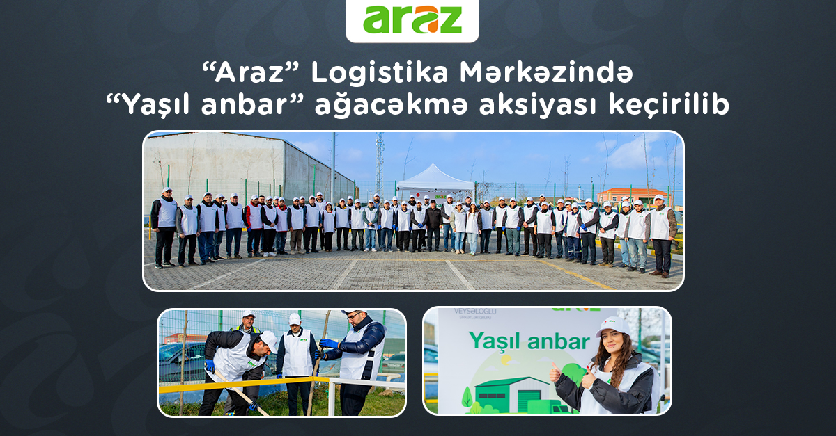 “Araz” supermarketlər şəbəkəsinə məxsus “Araz” Logistika Mərkəzinin həyətyanı sahəsində ekoloji tarazlığın qorunmasına və yaşıllığın artırılması məqsədilə ağacəkmə aksiyası keçirilib.