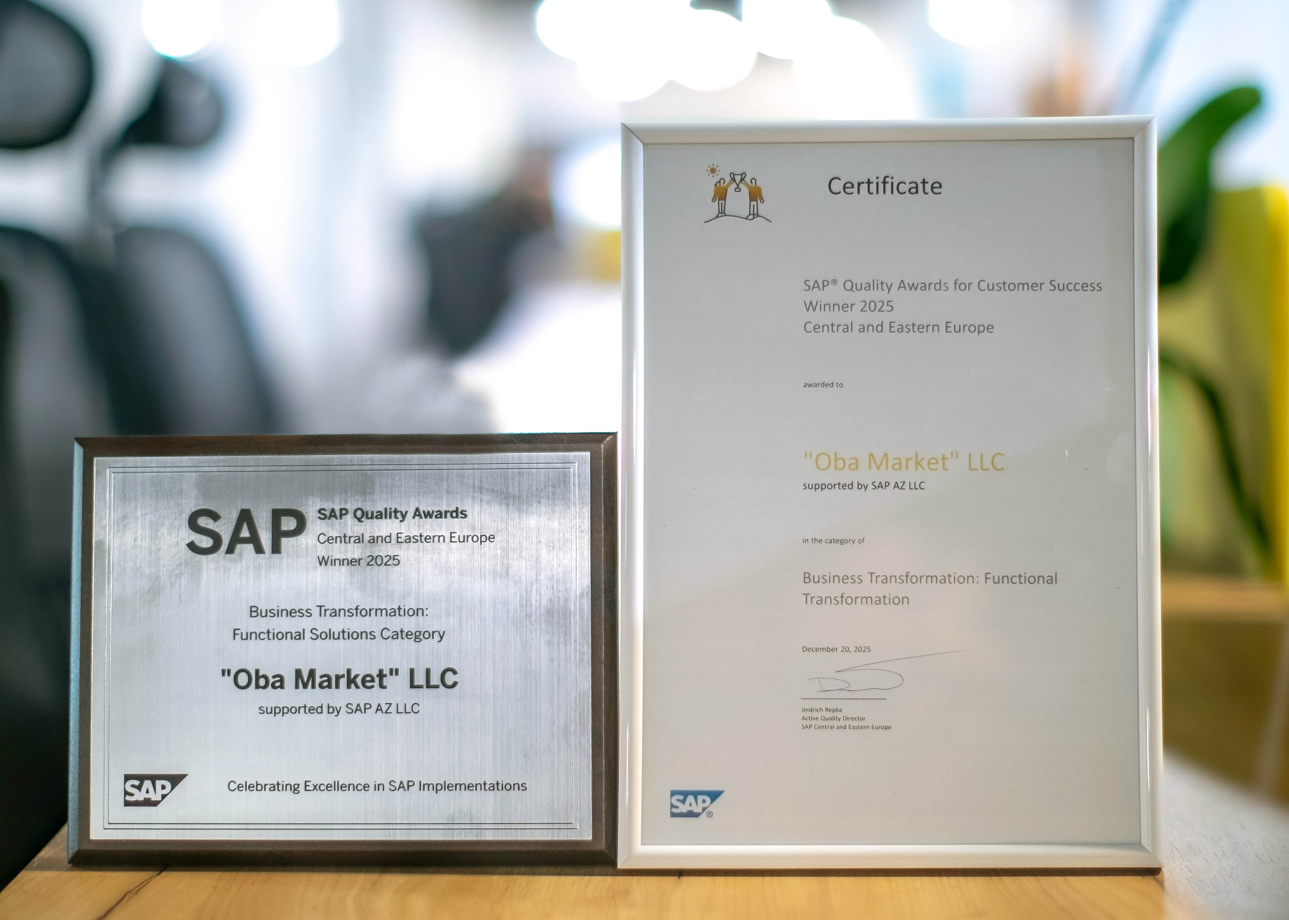 “OBA” marketlər şəbəkəsində tətbiq olunan SAP SuccessFactors layihəsi 24 ölkə arasından seçilərək “Biznes Transformasiyası” nominasiyasında beynəlxalq mükafatla təltif olunub.