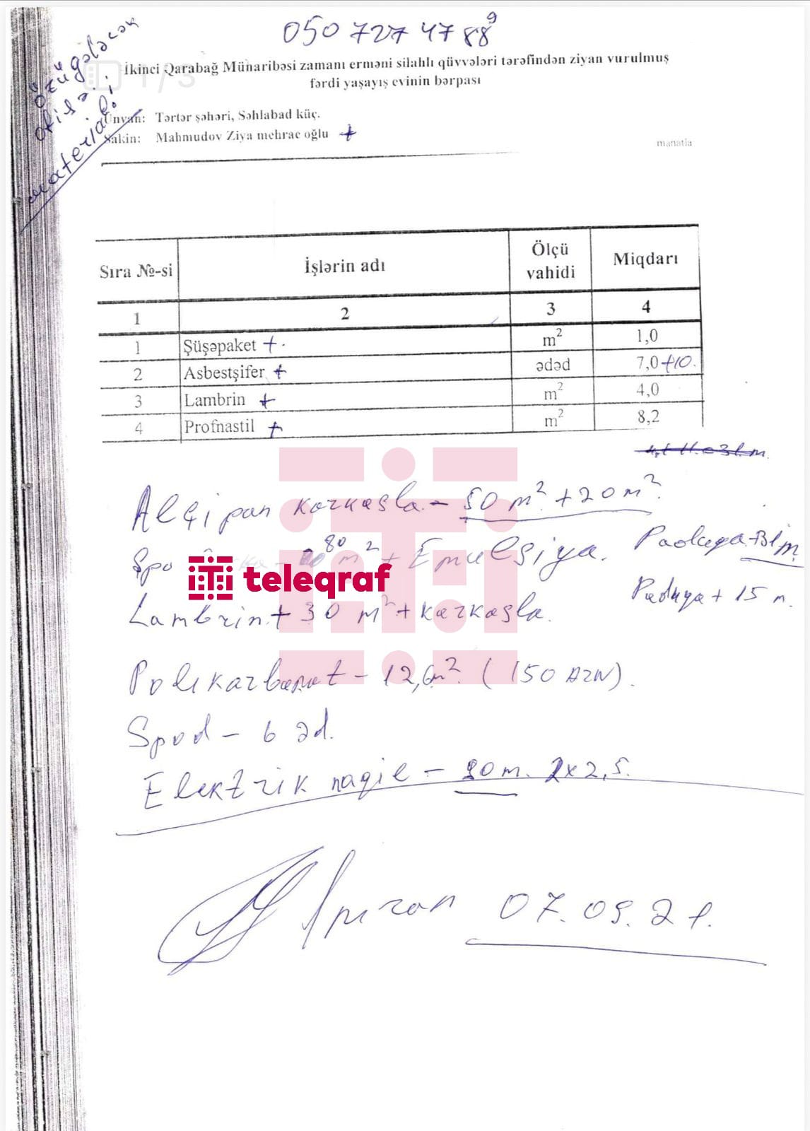 Halbuki sənəd digər şirkətə verilsəydi, ev dövlət hesabına bərpa olunacaqdı. İndi ev təmirsiz vəziyyətdədir, qəlpə izləri açıq-aydın görünür. Polis də deyir ki, sən sənədə imza atmısan. Bəli, sənədə imza atmışam, amma evin vəziyyəti də göz önündədir”.