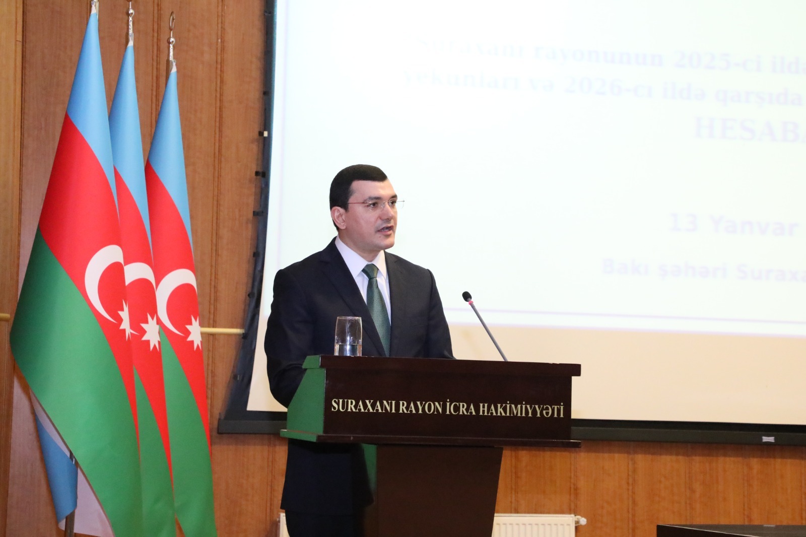 Yanvar ayının 13-də Suraxanı Rayon İcra Hakimiyyəti başçısının “Suraxanı rayonunun 2025-ci ildə sosial-iqtisadi inkişafının yekunları və 2026-cı ildə qarşıda duran vəzifələr haqqında” hesabat yığıncağı keçirilib.