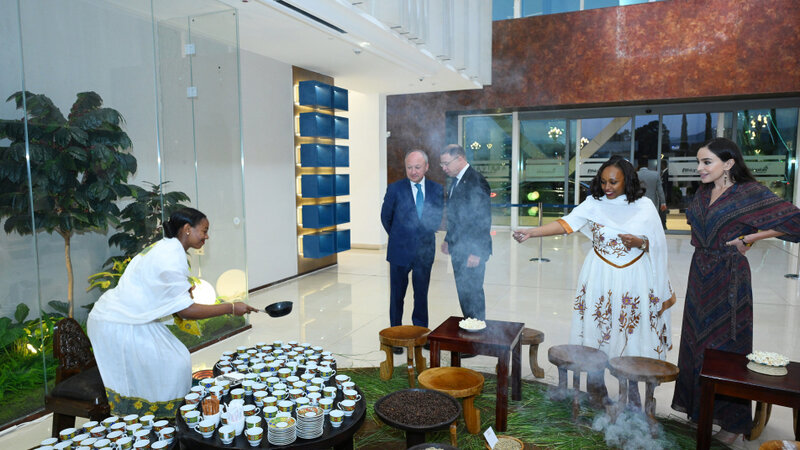Leyla Əliyevanın şərəfinə Efiopiyanın qədim və zəngin mədəniyyətini əks etdirən ənənəvi qəhvə mərasimi təşkil olunub. Tədbir zamanı qonaqlara bu qədim ritualın detalı haqqında məlumat verilib. Mərasimin sonunda qonaqlara əsrarəngiz ətri və özünəməxsus dadı ilə seçilən təzə dəmlənmiş Efiopiya qəhvəsi təqdim olunub.