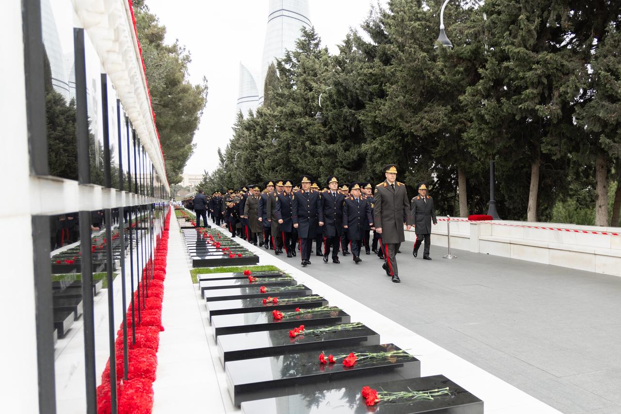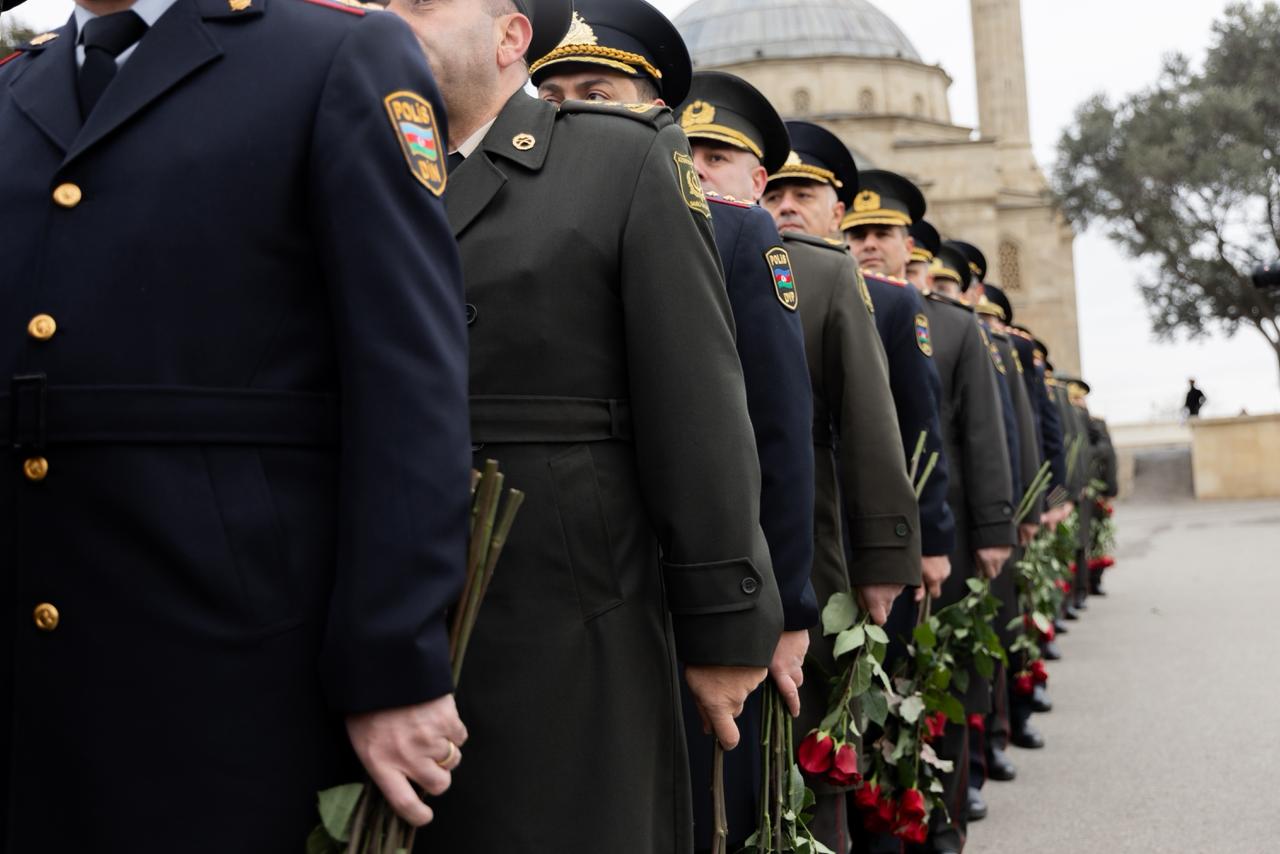 Daxili İşlər Nazirliyinin şəxsi heyəti Şəhidlər xiyabanında 20 Yanvar şəhidlərinin əziz xatirəsini yad edib.