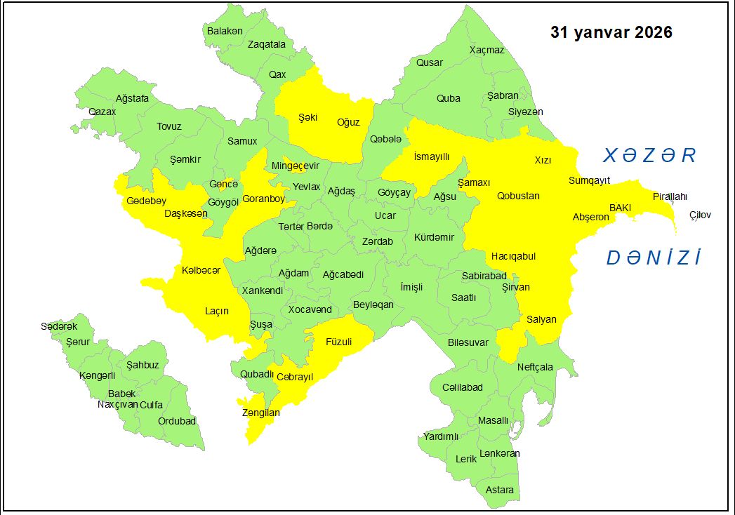 Yanvarın 31-də Bakıda və Abşeron yarımadasında, eyni zamanda bəzi bölgələrdə gözlənilən küləkli hava şəraiti ilə bağlı sarı xəbərdarlıq verilib.