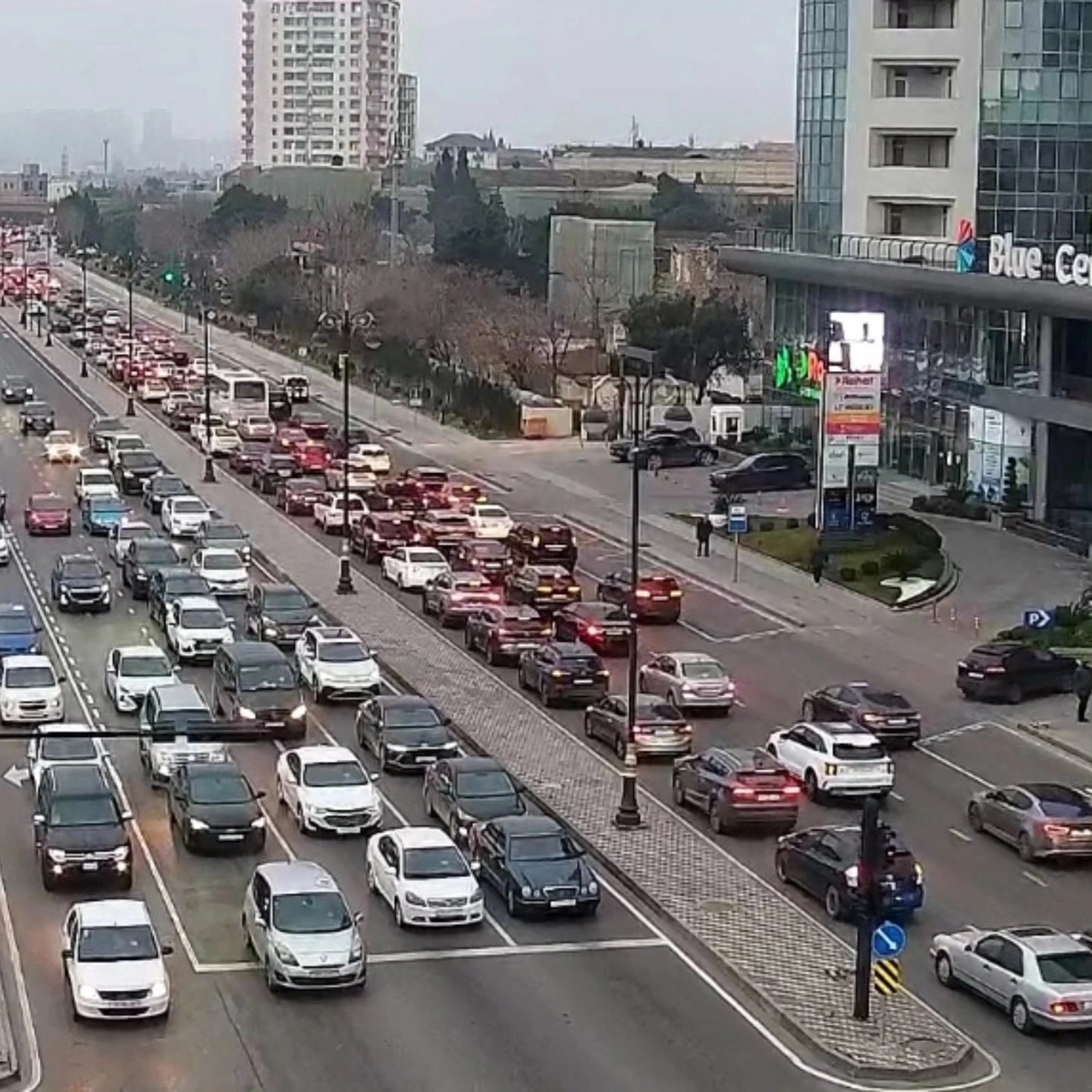 10. Alı Mustafayev küçəsi, Ziya Bünyadov prospekti istiqamətində sıxlıq müşahidə olunur.