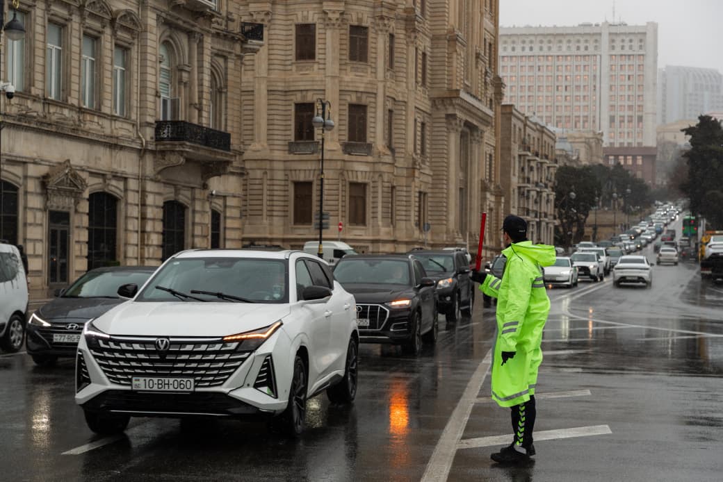 Mövcud hava şəraiti ilə bağlı vətəndaşların təhlükəsizliyinin təmini məqsədilə polis naryadları küçə və prospektlər boyu xidmətə cəlb ediliblər.