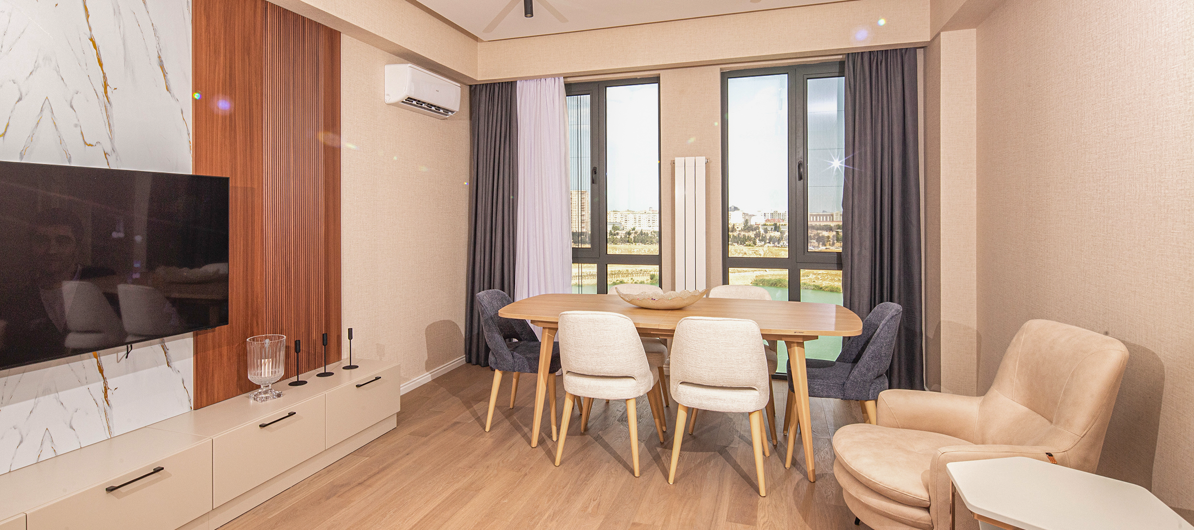 Layihə Yasamal rayonunda, 3 saylı Bakı “ASAN xidmət” mərkəzinin yaxınlığında, şəhərə rahat çıxışı olan ərazidə yerləşir. Kompleksdə həm hazır, həm tikintisi davam edən, həm də əşyalı mənzillər satışdadır. Mənzillər 39,71 m²-dən 120,47 m²-dək, 2, 3, 4 otaqlı və studiya variantlarda təqdim olunur. İtkisiz, maksimum səmərəli planlanan mənzillər sakinlərə Avropa brendləri ilə tam təmirli şəkildə təhvil verilir.