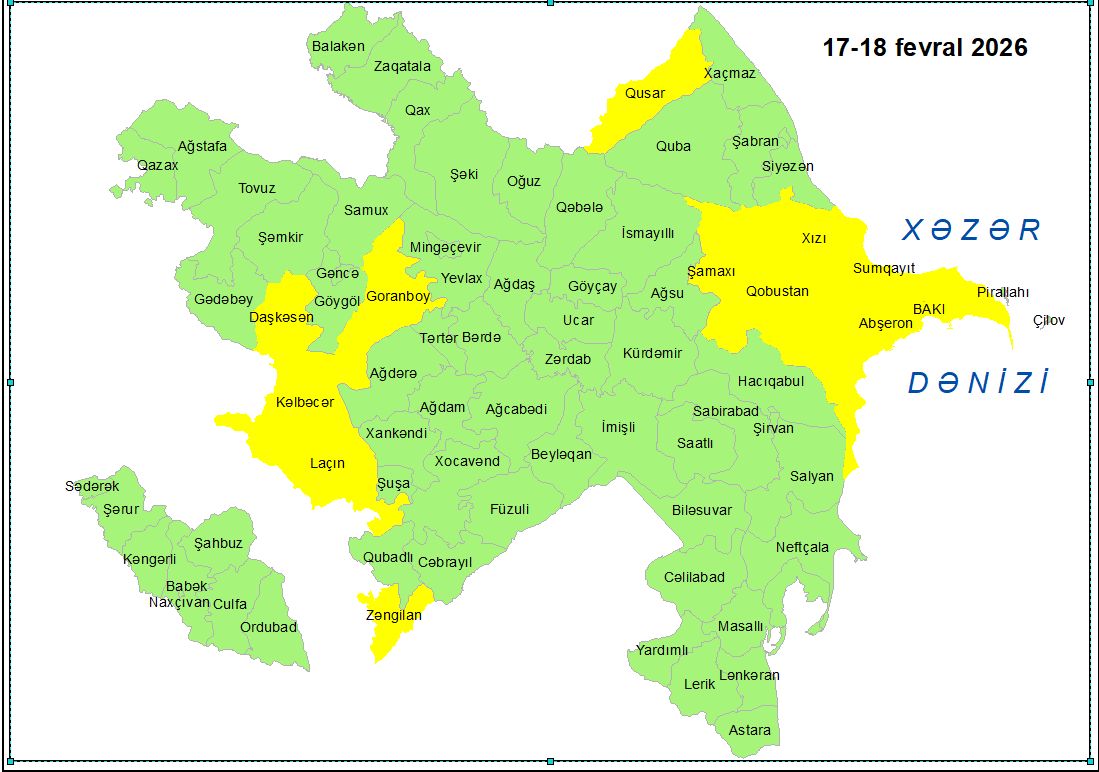 Fevralın 17-18-də Bakıda və Abşeron yarımadasında, eyni zamanda bəzi bölgələrdə gözlənilən küləkli hava şəraiti ilə bağlı sarı xəbərdarlıq verilib.