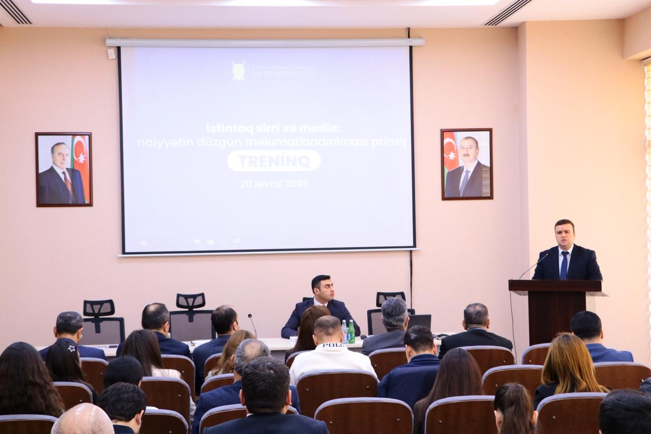 Prokurorluq orqanları ilə media və qeyri-hökumət təşkilatları arasında işgüzar əlaqələrin möhkəmləndirilməsi, fəaliyyət istiqamətləri üzrə keyfiyyət və səmərəliliyin daha da artırılması, məlumat mübadiləsi zamanı mövcud qanunvericiliyin tələblərinə əməl olunması, eləcə də istintaq sirri təşkil edə biləcək məlumatların ictimailəşdirilməsinin qarşısının alınması məqsədilə cari ilin fevral ayının 20-də jurnalistlər üçün “İstintaq sirri və media: ictimaiyyətin düzgün məlumatlandırılması prinsipləri” mövzusunda treninq təşkil olunub.