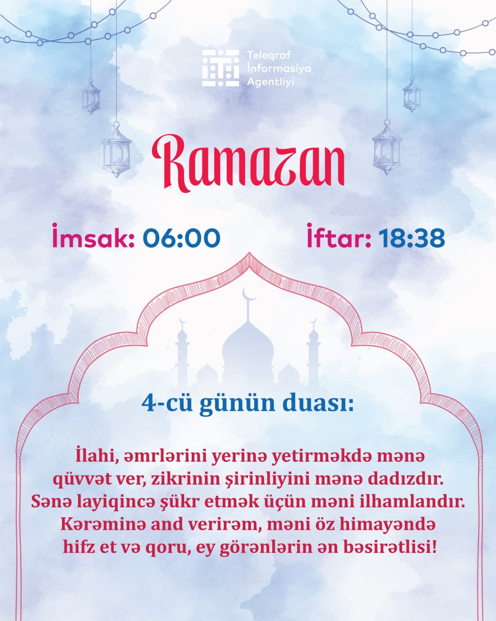 Fevralın 22-i Ramazan ayının dördüncü günüdür.
