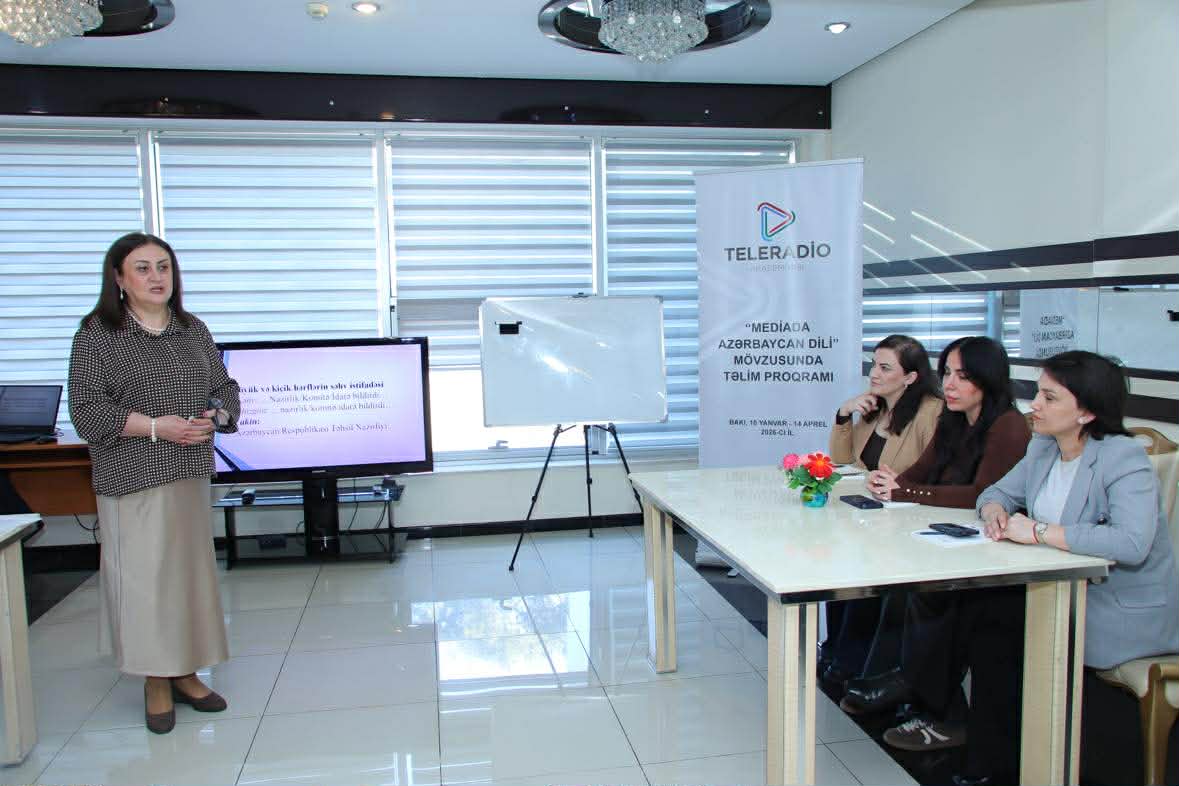 “Azərbaycan Televiziya və Radio Verilişləri” QSC-nin nəzdində fəaliyyət göstərən Teleradio Akademiyasında “Mediada Azərbaycan dili” mövzusunda təlimlərin növbəti mərhələsi təşkil olunub.
