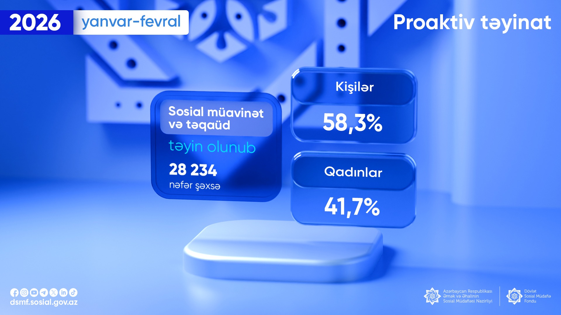 Cari ilin yanvar-fevral aylarında 28 234 nəfər şəxsə proaktiv qaydada sosial müavinət (aylıq və birdəfəlik) və təqaüd təyin olunub.