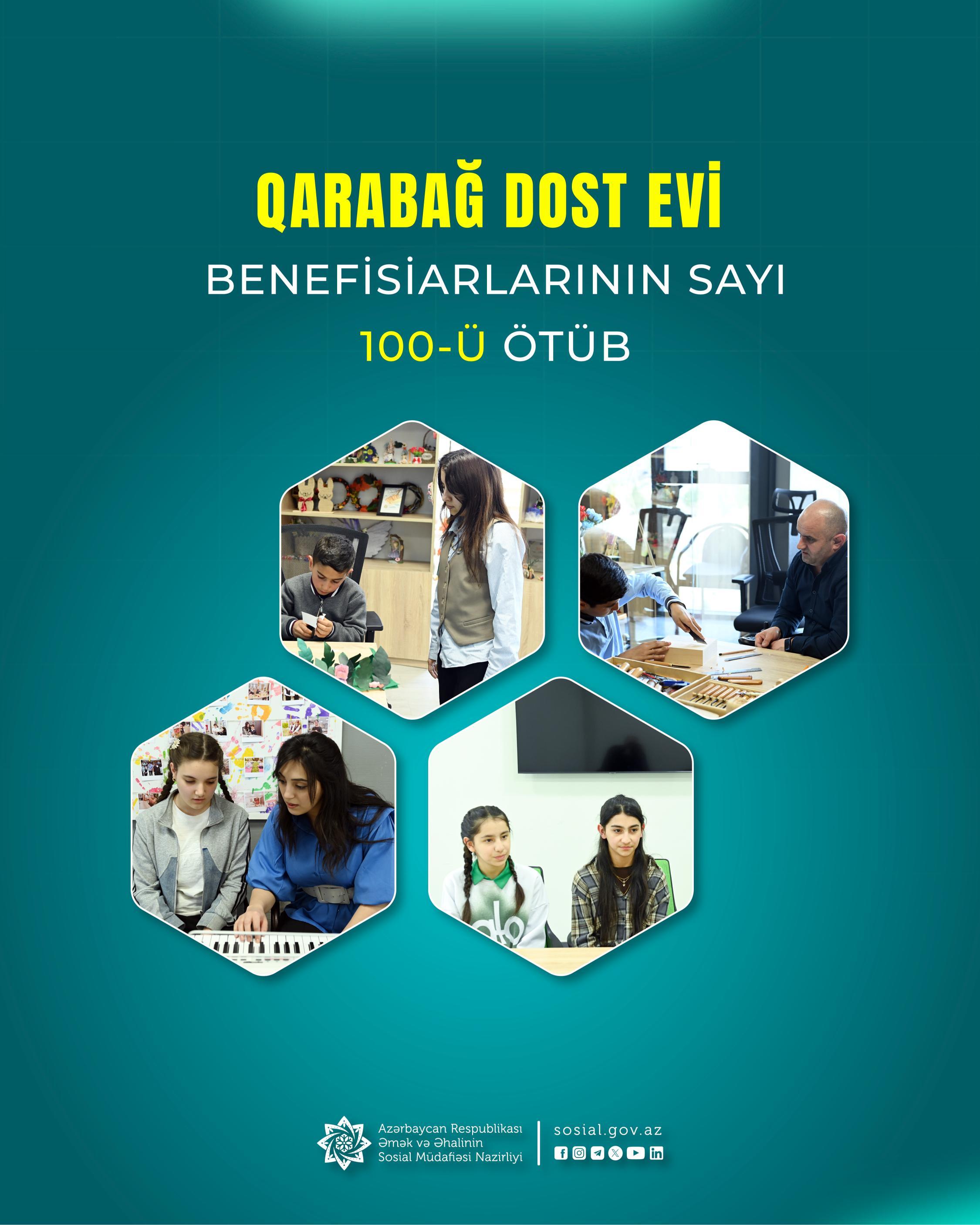 Qarabağ “DOST Evi”nin xidmətlərindən əlilliyi olan şəxslər, şəhid ailələrinin üzvləri, müharibə ilə əlaqədar əlilliyi olan şəxslər və onların övladları, valideynlərini itirmiş və ya valideyn himayəsindən məhrum olmuş uşaqlar, aztəminatlı ailələrin üzvləri yararlana bilərlər.