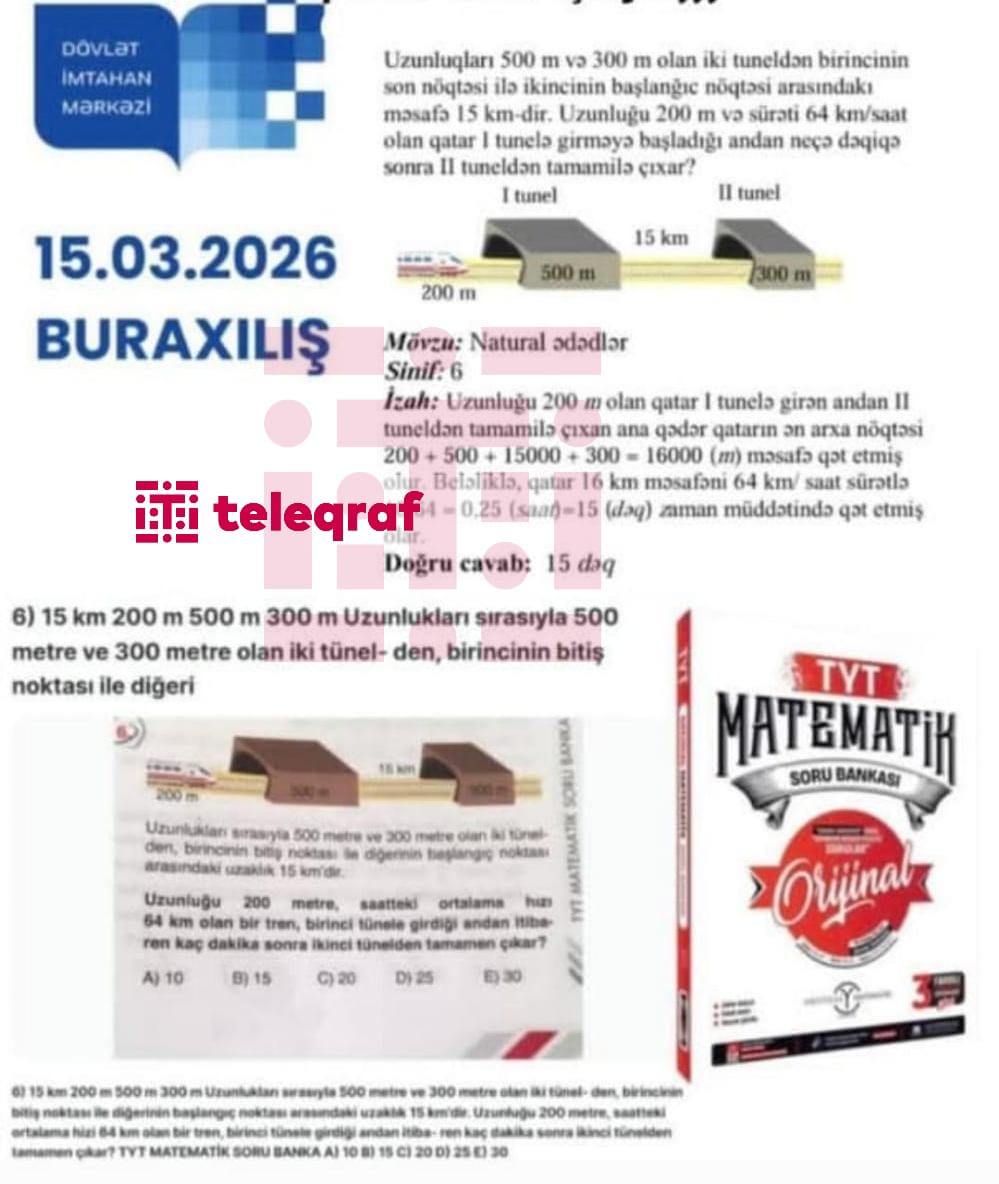 "Müraciətinizdə bəhs etdiyiniz tapşırığın tərtibində əsas məqsəd konkret mətn və ya sxem deyil, abituriyentlərin yoxlanılan riyazi bilik və bacarıqlarının (məntiqi düşünmə, məsafə-sürət-zaman əlaqələrini tətbiq etmə və analitik hesablamalar aparma qabiliyyətinin) qiymətləndirilməsidir".