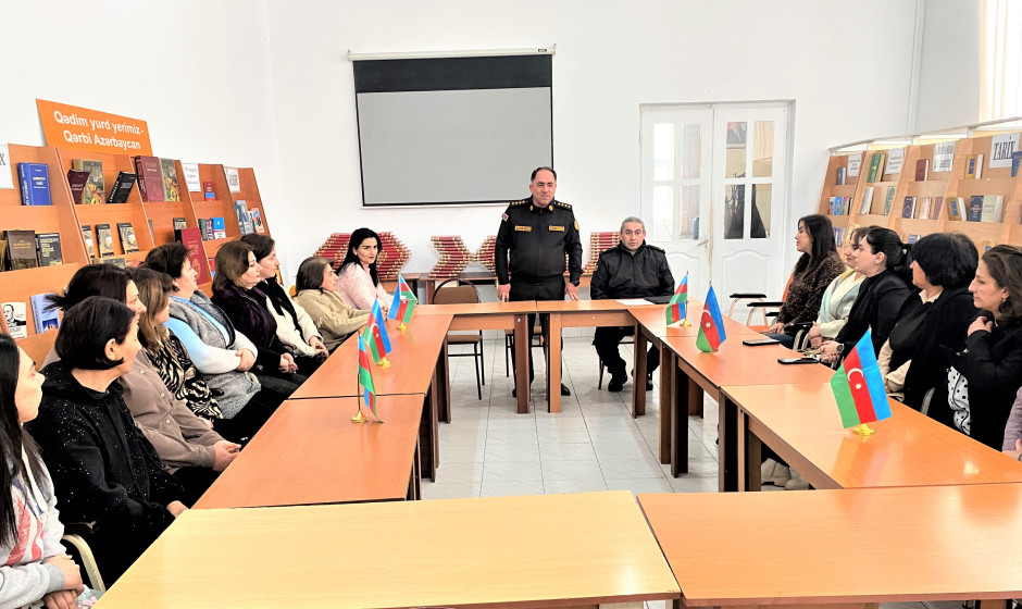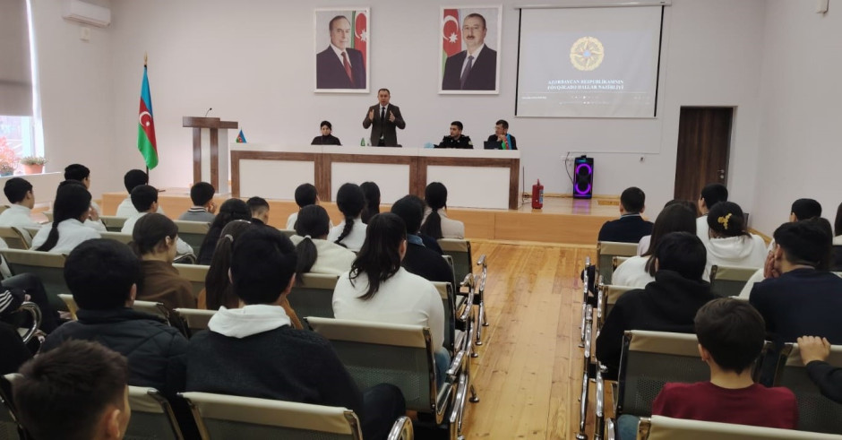 Belə ki, FHN-in Dövlət Yanğın Nəzarəti, Kiçikhəcmli Gəmilərə Nəzarət və Sularda Xilasetmə Dövlət xidmətlərinin mütəxəssislərinin də iştirakı ilə Bakı Regional Mərkəzi (RM) tərəfindən Sabunçu rayonu 4, Xəzər rayonu 123 və 124 nömrəli, Nəsimi rayonu 247, Səbail rayonu 236, Binəqədi rayonu 283 nömrəli tam orta məktəblərində, 90 saylı uşaq bağçasında və Əmanətlərin Sığortalanması Fondunda, Sumqayıt RM tərəfindən Ceyranbatan Su Təchizatı İdarəsində, Xızı rayonu Tıxlı kənd orta ümumtəhsil məktəbində, Sumqayıt şəhər 16 nömrəli və Abşeron rayonu Masazır kənd 5 nömrəli tam orta ümumtəhsil məktəblərində, Gəncə RM tərəfindən Qazax rayonu Rəsul Mirzəliyev adına Alpout kənd tam orta məktəbində, Gəncə Şəhəri İcra Hakimiyyəti başçısının Hacıkənd Qəsəbə ərazi dairəsi üzrə nümayəndəliyində və Gəncə şəhər Telekommunikasiya İdarəsində, Qarabağ RM tərəfindən Bərdə rayonu Alpoud kənd, Ağdam rayonu Mahrızlı kənd və Tərtər şəhəri 5 nömrəli tam orta məktəblərində, Şimal-Qərb RM tərəfindən Qəbələ şəhər Qəbələ City Hoteldə və Qəbələ rayonu Mərkəzləşdirilmiş Kitabxana Sisteminin Mərkəzi Kitabxanasında, Muğan RM tərəfindən Sabirabad rayonu Narlıq kənd tam orta ümumtəhsil məktəbində, Aran RM tərəfindən Ağdaş rayonu İcra Hakimiyyəti başçısının Şıxlı kənd İnzibati ərazi dairəsi üzrə nümayəndəliyinin inzibati binasında, Goranboy rayonu Zeyvə kənd inzibati ərazi dairəsi üzrə nümayəndəliyinin inzibati binasında və Ağdaş rayonu Cücük kənd tam orta məktəbində, Cənub RM tərəfindən Astara şəhəri C.Babayev adına 3 nömrəli liseydə, Şimal RM tərəfindən Əmək və Əhalinin Sosial Müdafiəsi Nazirliyinin tabeliyindəki Dövlət Tibbi-Sosial Ekspertiza və Reabilitasiya Agentliyi Xaçmaz Reabilitasiya Mərkəzində və Quba rayonu Qəçrəş kənd tam orta məktəbində maarifləndirmə tədbiriləri keçirilib.