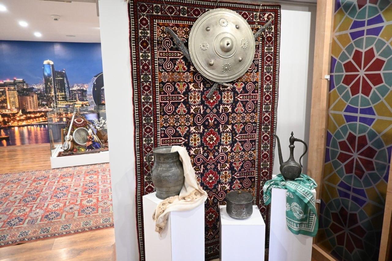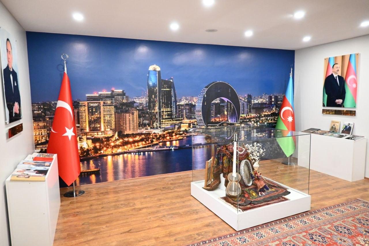 Məkanda dövlətçiliyimiz, tariximiz, Azərbaycanın 44 günlük Vətən müharibəsində qazandığı şanlı Zəfər və milli mədəniyyətimizə dair guşələr yer alıb. Buradakı xüsusi bölmələrə Ulu öndərlər Heydər Əliyevin “Biz bir millətin iki dövlətiyiz”, Mustafa Kamal Atatürkün “Azərbaycanın sevinci sevincimiz, kədəri kədərimizdir” şüarları və portretləri yerləşdirilmişdir. Bundan başqa 44 günlük Vətən müharibəsinə həsr olunmuş xüsusi guşədə Xarı Bülbül maketi və zəfərimizə həsr olunmuş fotoşəkillər yer almışdır.