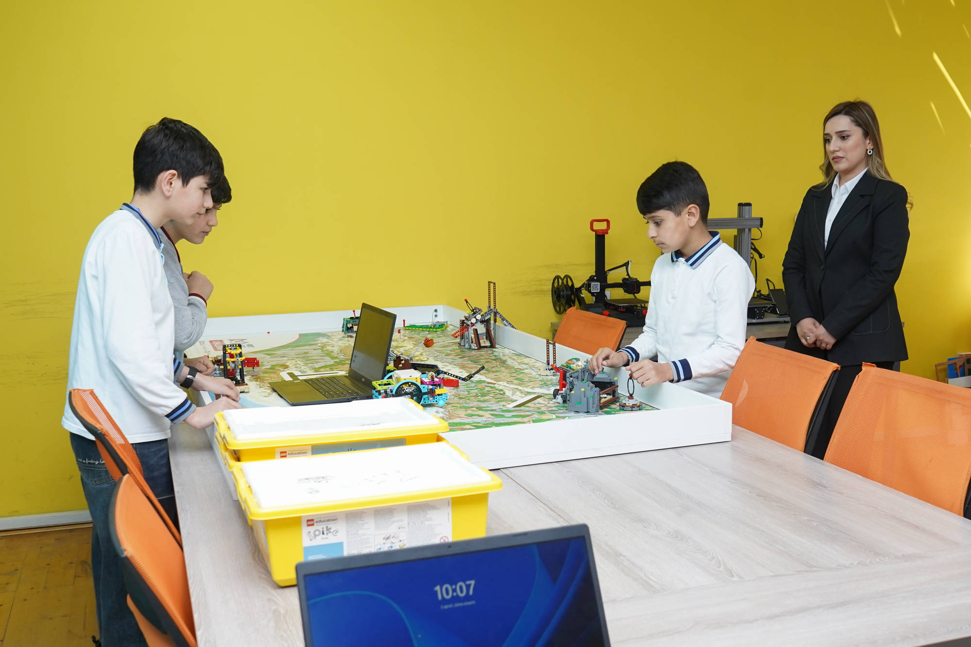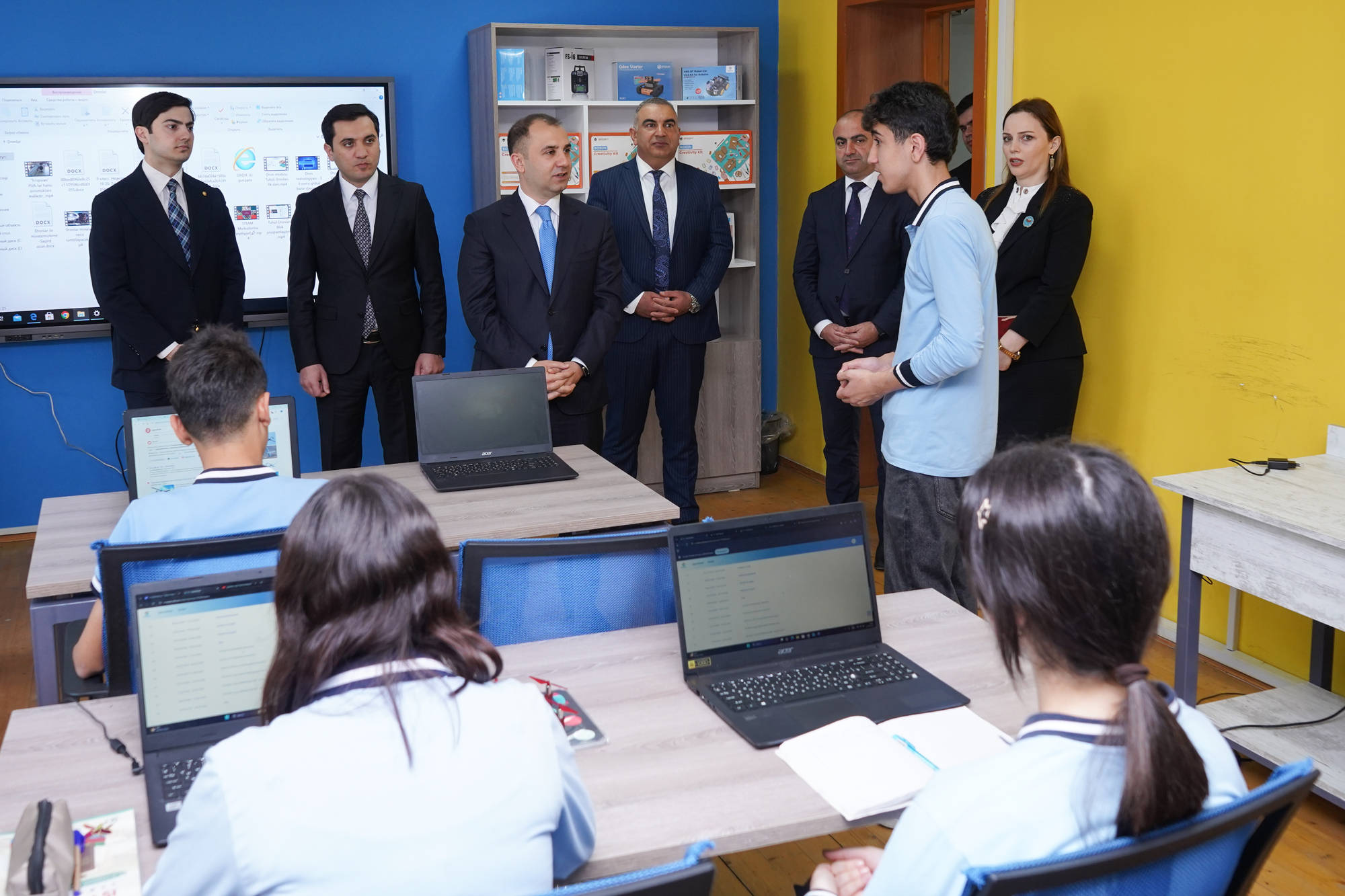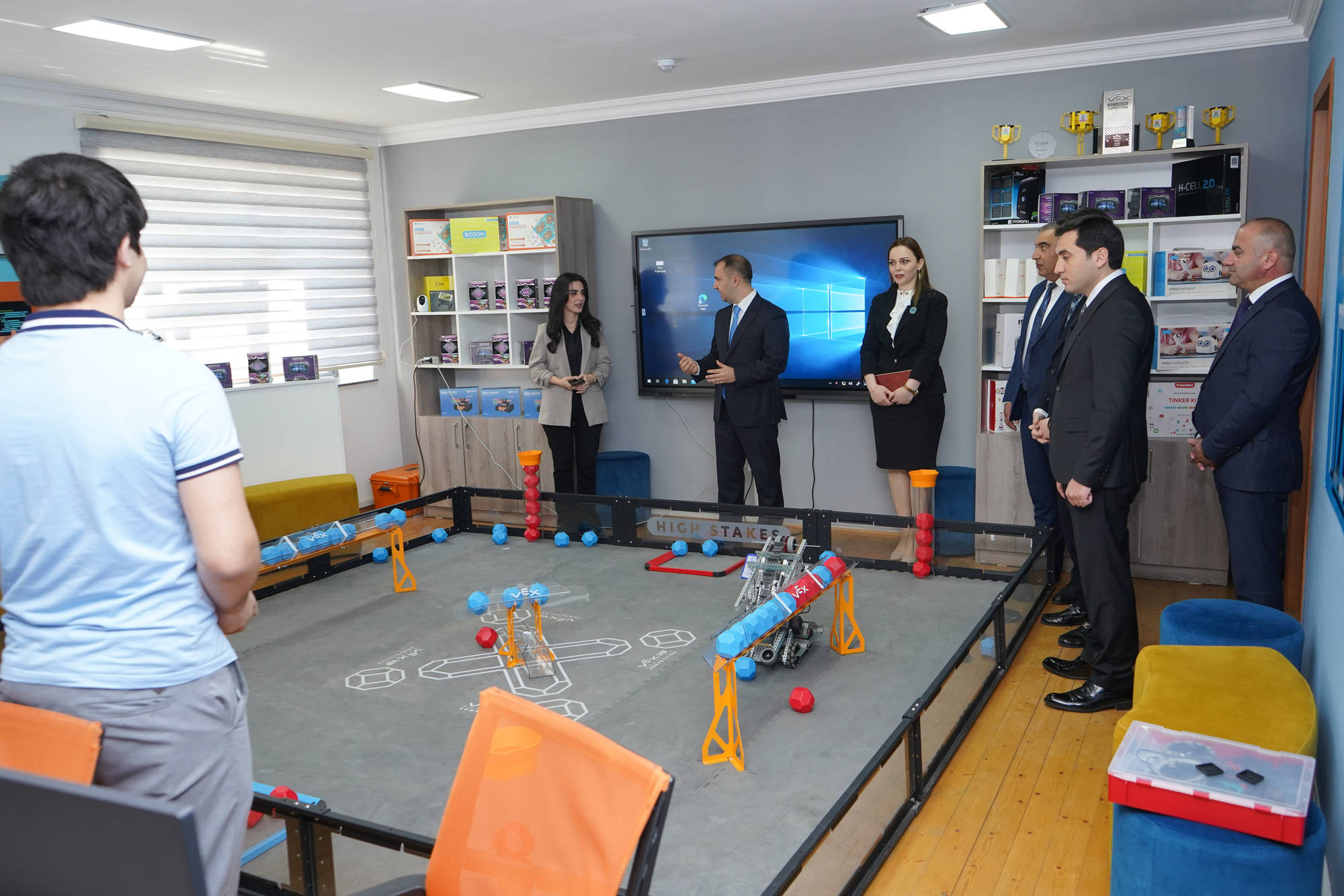 Məktəblə tanışlıq zamanı nazir müavini burada fəaliyyət göstərən STEAM Mərkəzinə də baxış keçirib, STEAM və “Rəqəmsal bacarıqlar” layihələri çərçivəsində dərs prosesində iştirak edib. Sözügedən layihələr çərçivəsində şagirdlərdə analitik düşünmə, problem həll etmə və texnoloji bacarıqların formalaşdırılması istiqamətində görülən işlər diqqətə çatdırılıb. Məktəbdə kiçik yaşlı məktəblilərin dron vasitəsilə hazırladıqları oyuna baxış keçirilib.