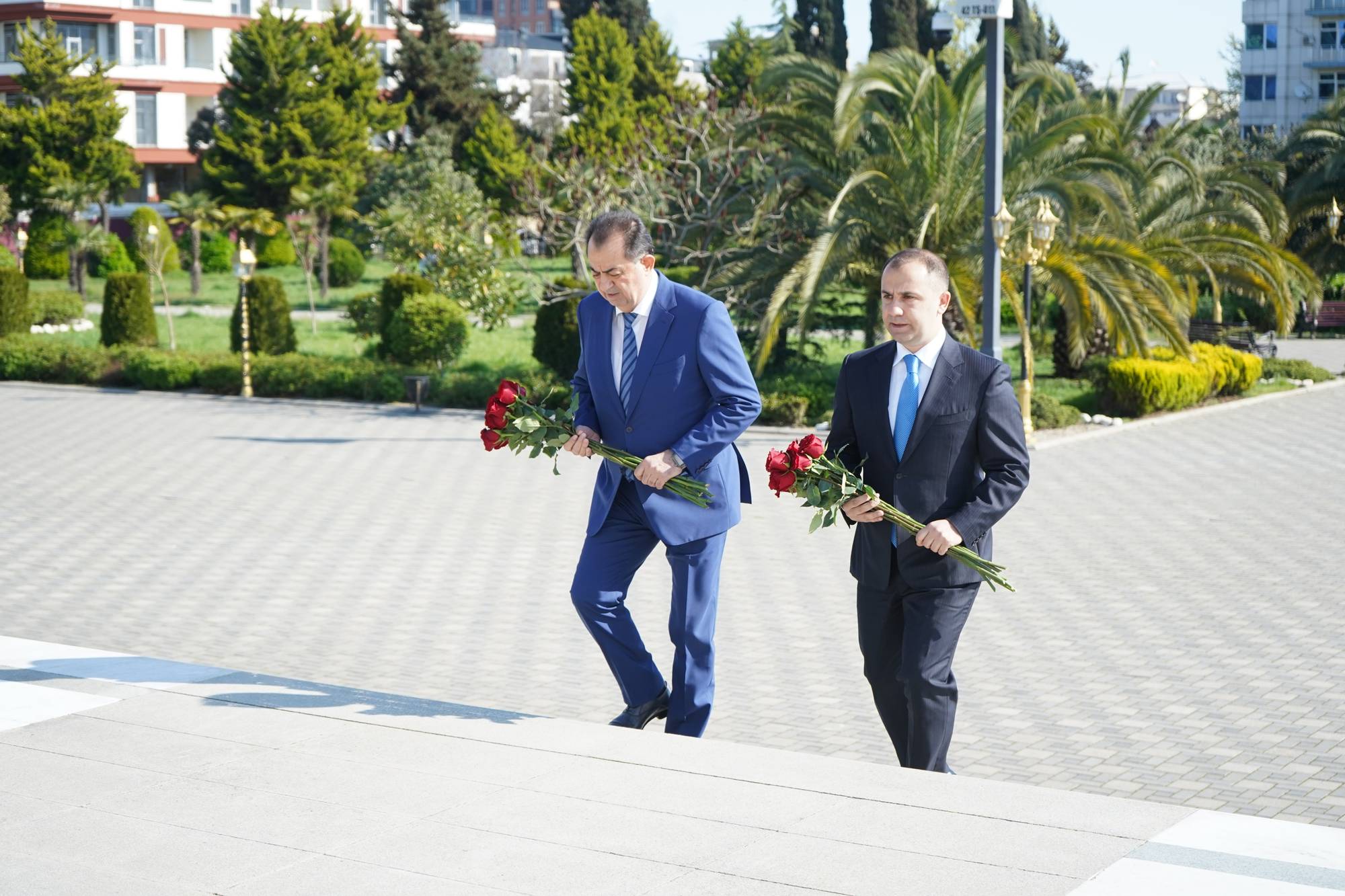 Teleqraf xəbər verir ki, əvvəlcə Lənkəran Şəhər İcra Hakimiyyətinin başçısı Taleh Qaraşov ilə birgə ulu öndər Heydər Əliyevin abidəsi ziyarət edilib, önünə gül dəstələri düzülüb.