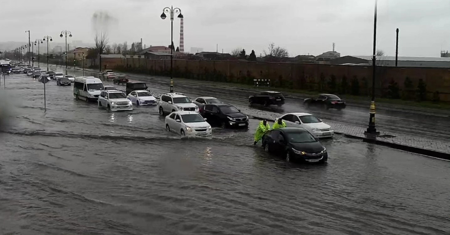 Hazırda yağıntılı hava şəraitinin davam etməsi paytaxt yollarında bəzi istiqamətlərdə nəqliyyatın hərəkətini çətinləşdirib, sıxlıq yaranıb.