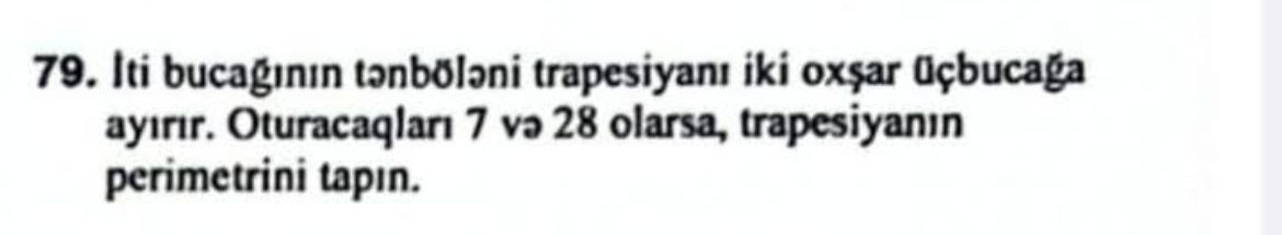 "Ümumi təhsil səviyyəsi üzrə 5 aprel 2026-cı il tarixində keçirilən buraxılış imtahanında trapesiya mövzusuna aid təqdim olunan tapşırığın əsas məqsədi şagirdlərin iti bucağın tənböləni nəticəsində yaranan daxili çarpaz bucaqların bərabərliyini müəyyən etməsi və bu əsasda yaranan üçbucaqların oxşarlığından istifadə edərək tərəflər arasında nisbətləri tapmaq bacarığını yoxlamaqdır".